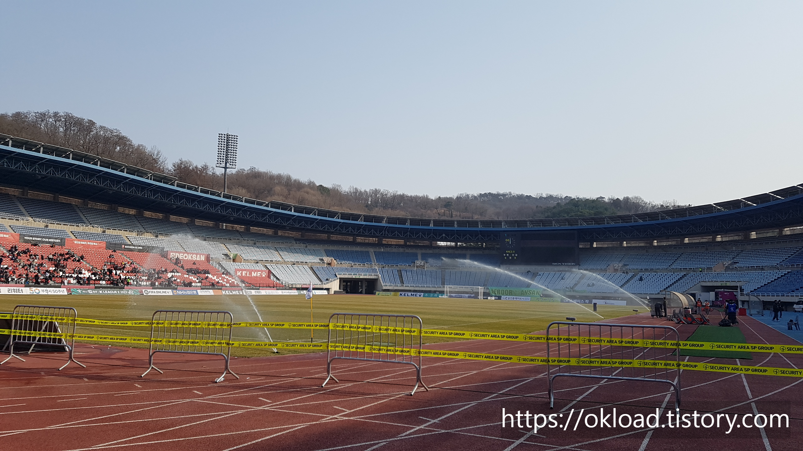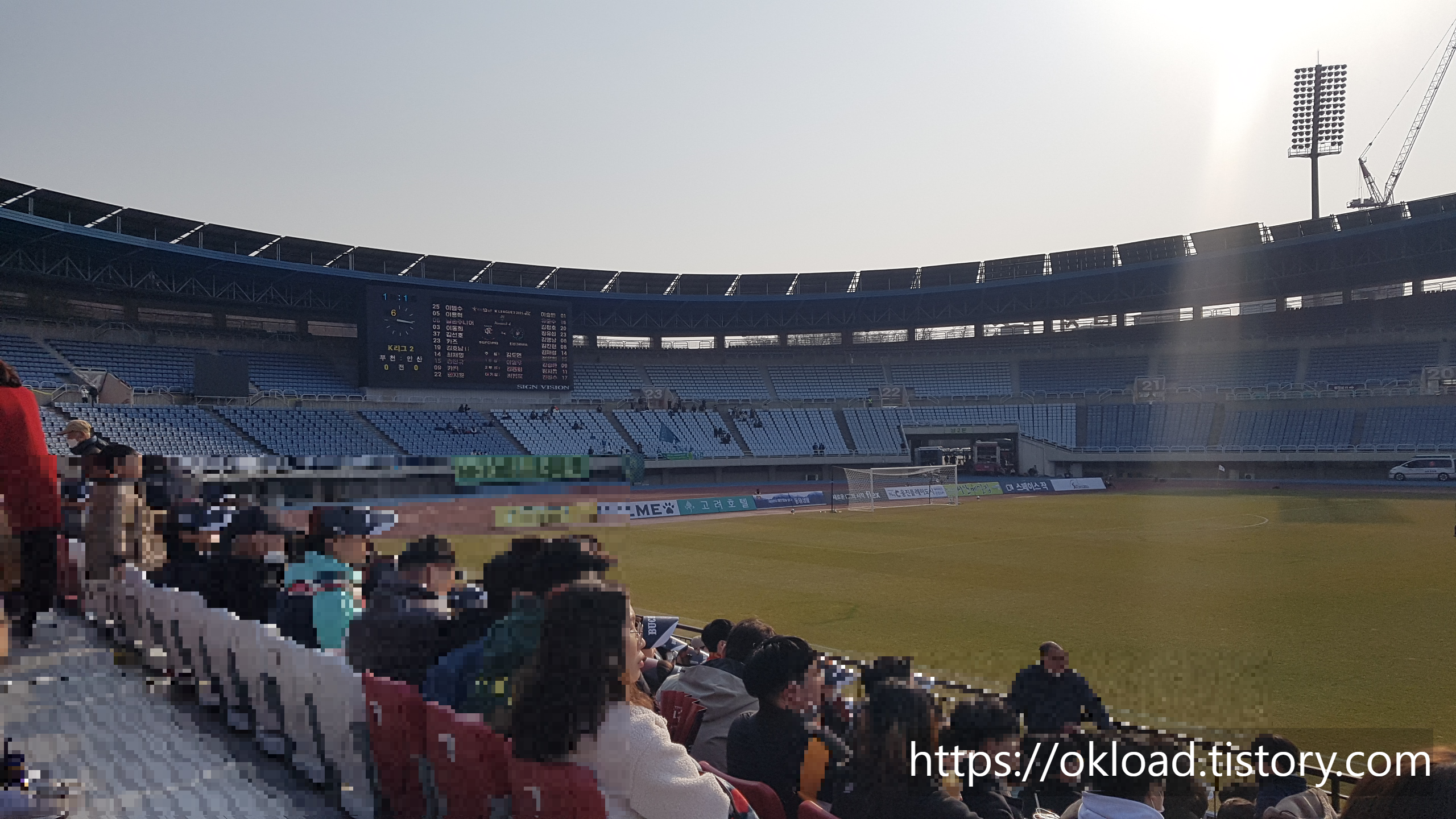 K리그1(1부리그)도 관중이 시원찮은 판인데, 2부 리그인 K리그2는 불 보듯 뻔했다. 당일 예매임에도 관중들이 선호하는 하프라이 가까운 지점의 좌석이 남아있어서 나름 명당자리를 쉽게 예매하였다. 이렇게 나의 K리그 첫 직관 관람의 인연이 시작되었다.