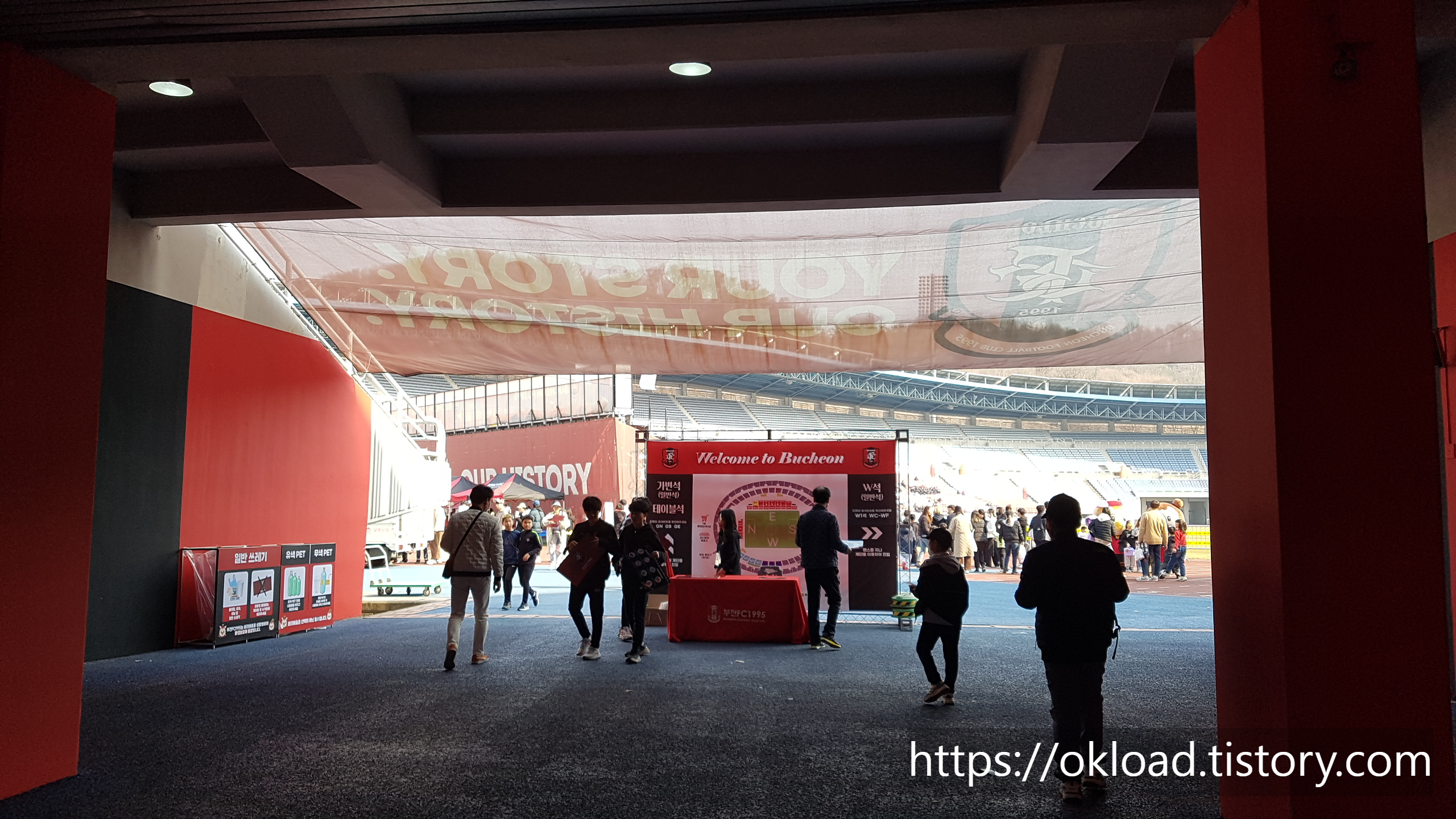 부천종합운동장 북문에서 입장권과 휴대품 확인을 마치면 드디어 스타디움 축구경기장 안으로 들어갈 수 있다. 다소 어두운 통로를 통과하여 밝은 경기장 안으로 들어가는 과정에서 설레고 흥분되는 기대감을 느꼈다.