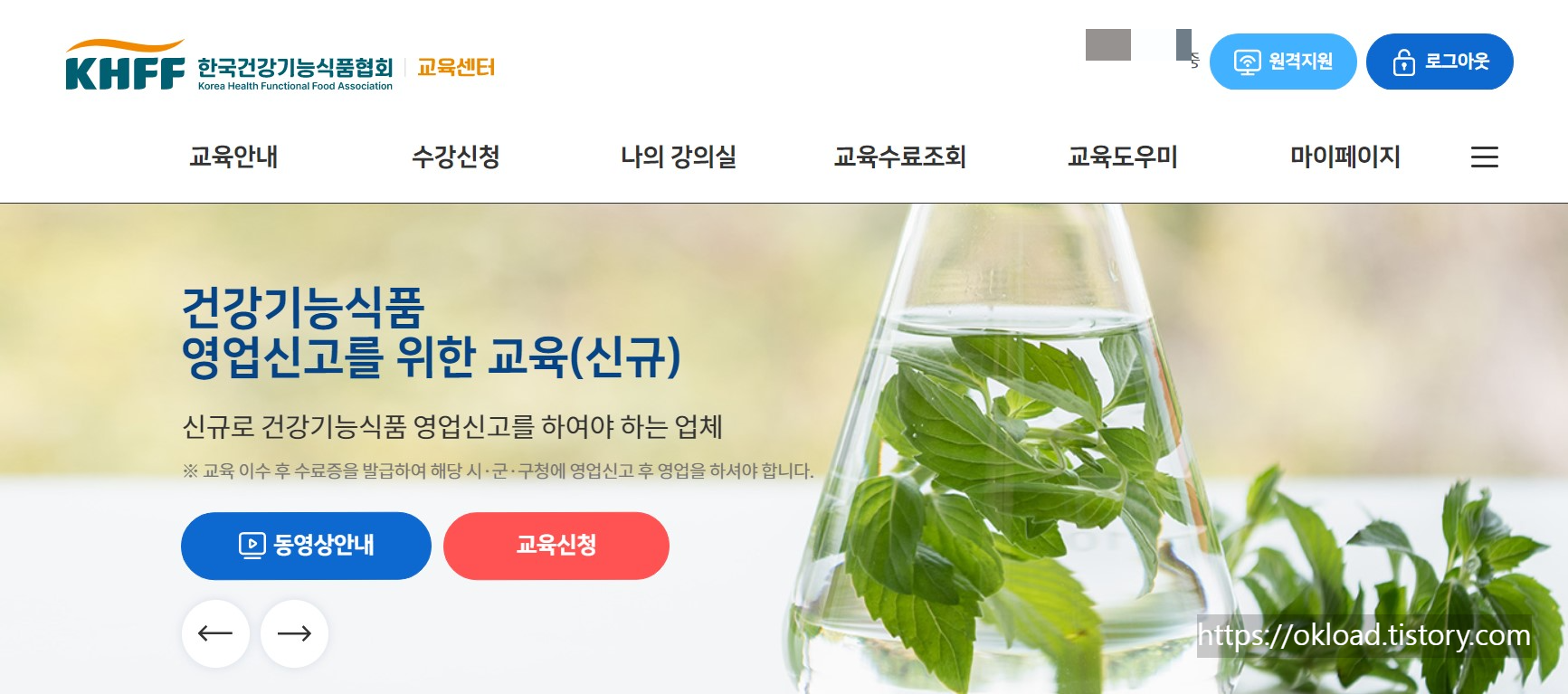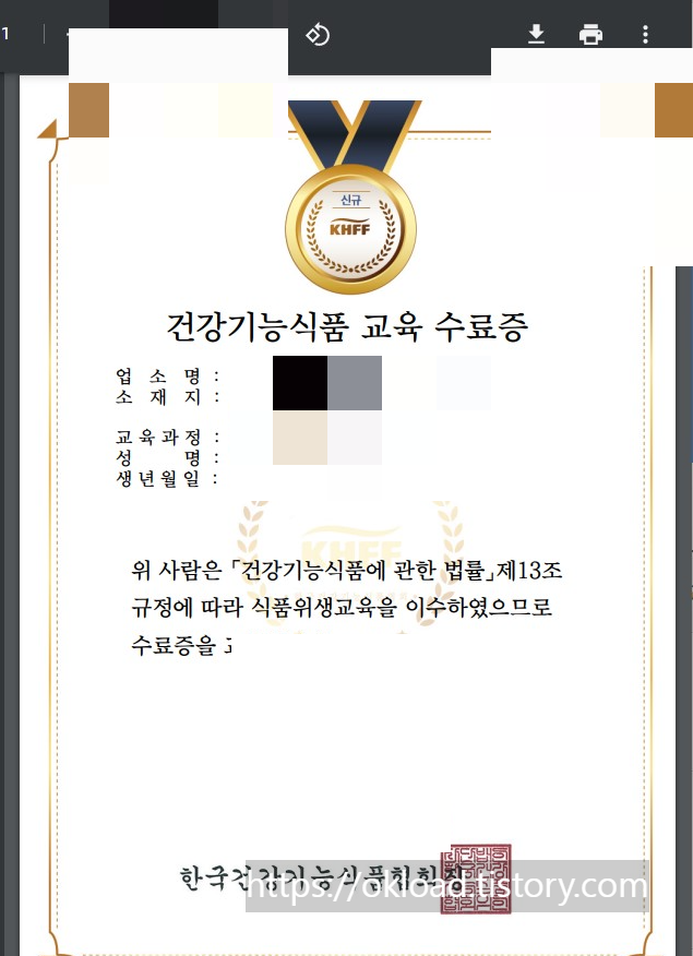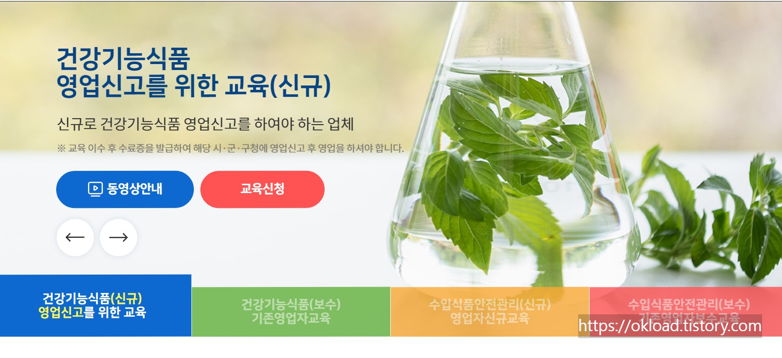 건강기능식품 영업신고를 위한 교육(신규) 이수 전에