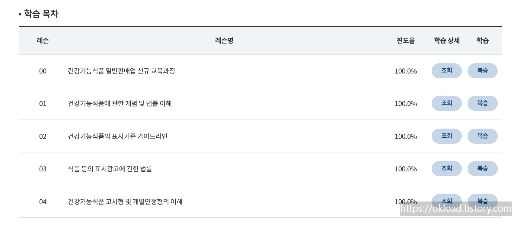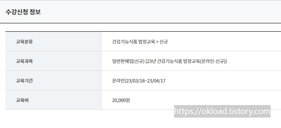 건강기능식품 교육 이수를 위한 강의 수강료(비용)