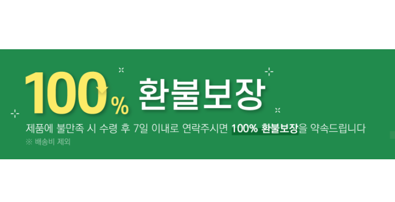 100% 환불보장이라는 문구가 가장 먼저 눈에 들어온다.