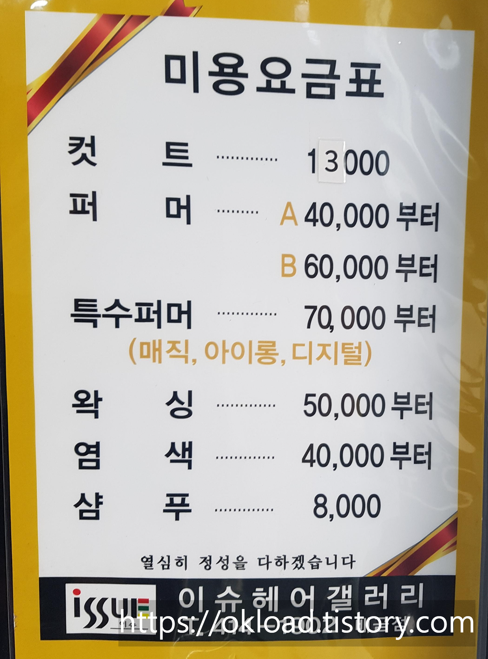 메뉴 미용 요금표에 기재되지는 않았지만,