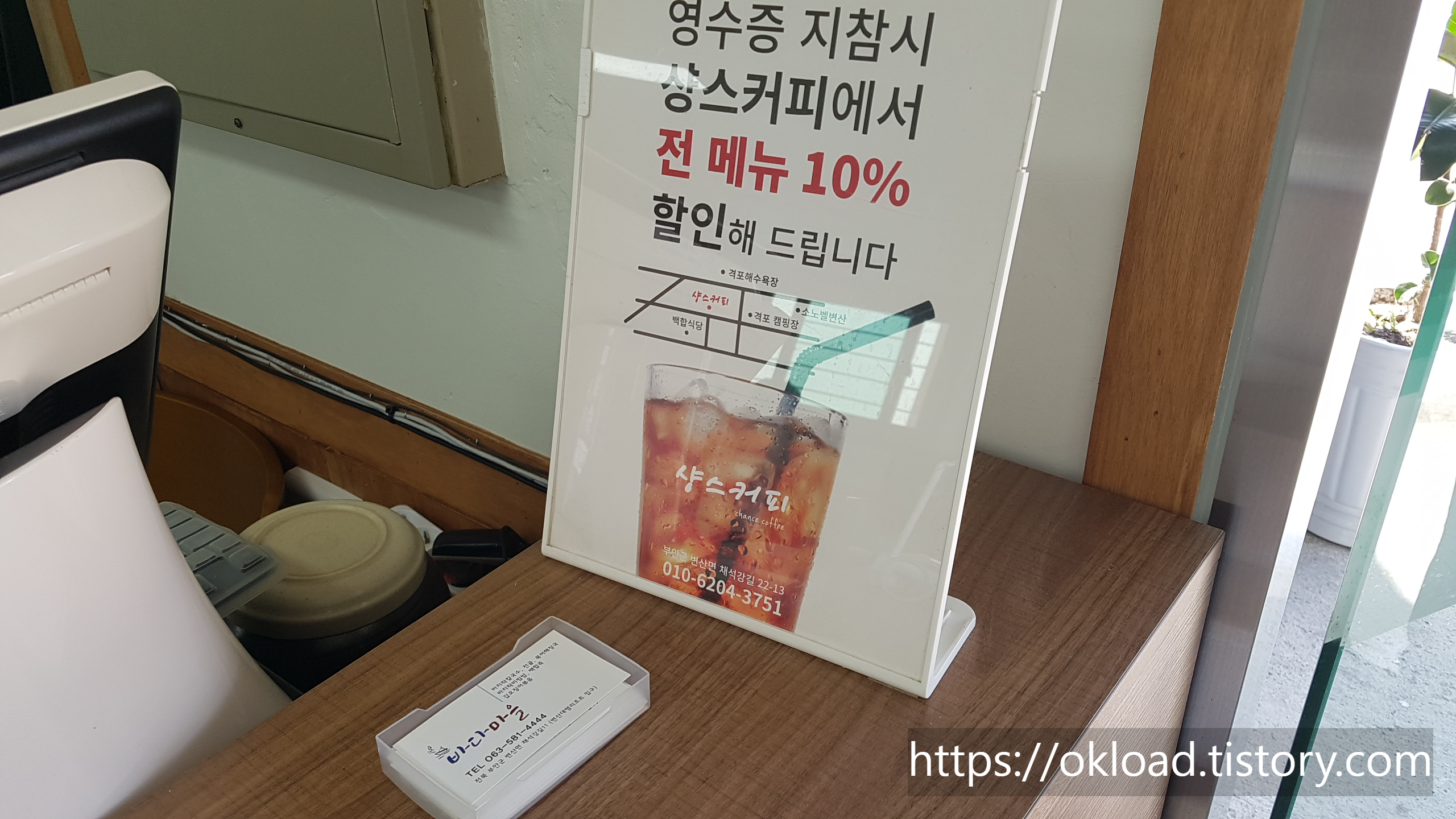 샹스커피 전 메뉴 10% 할인 홍보물이 보였다.