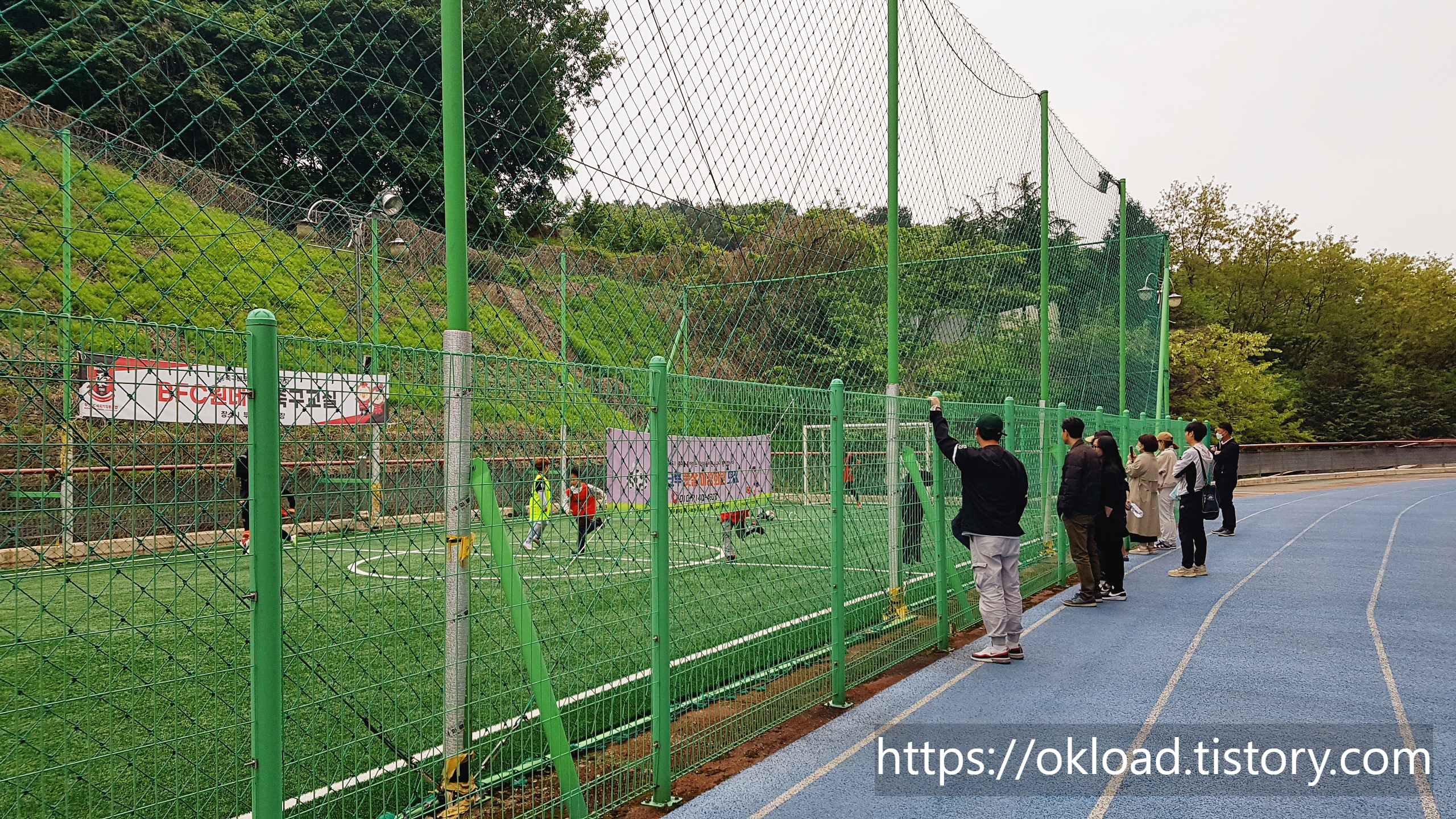 중간에 야외 풋살장이 보인다.