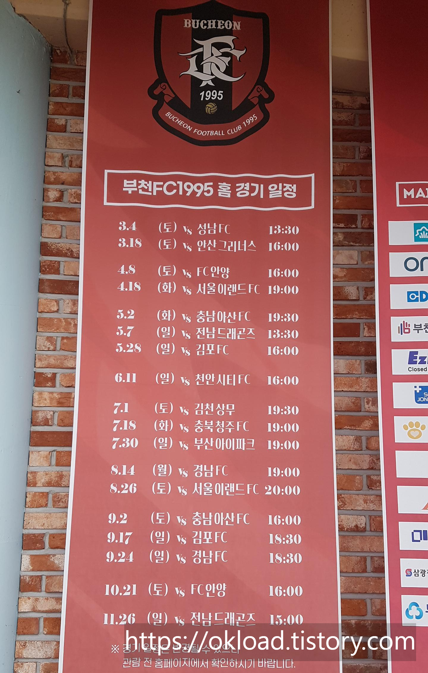 부천FC1995 홈경기 일정을 소개로