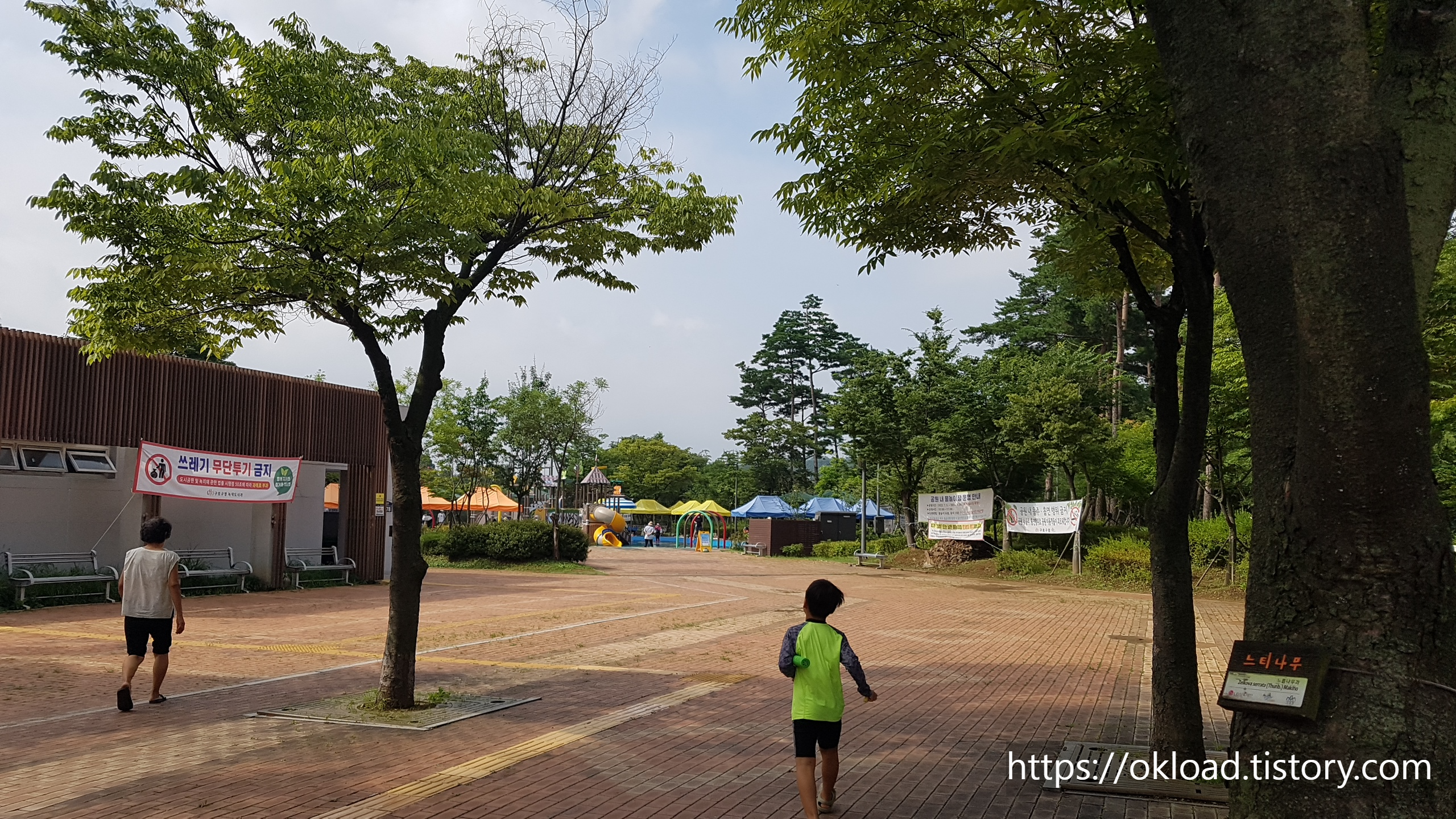 천왕근린공원 물놀이터 10시에 개장하고 2시간 정도 지나자 그늘이 있는 자리에는 대부분 돗자리가 깔렸고, 물놀이터 안으로 들어오는 아이들의 수가 눈에 띄게 늘어나기 시작했다. 그래서 이만하면 충분히 깨끗한 물에서 잘 놀았다 싶어서 물놀이장을 빠져나왔다.