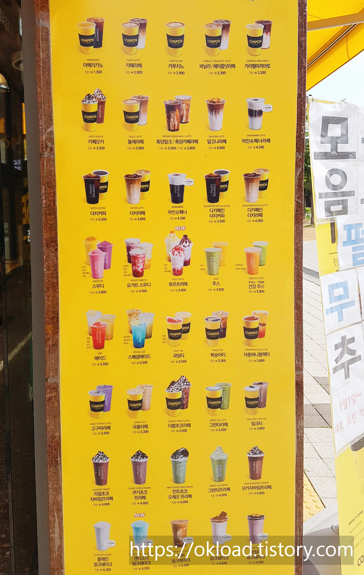 가성비좋은 저가커피의 카페 브랜드하면 메가커피와 컴포즈커피가 바로 떠오르지 않을까. 그만큼 프랜차이즈 실속형 저가카페의 대명사로 자리 잡은 카페 브랜드 컴포즈 커피다.