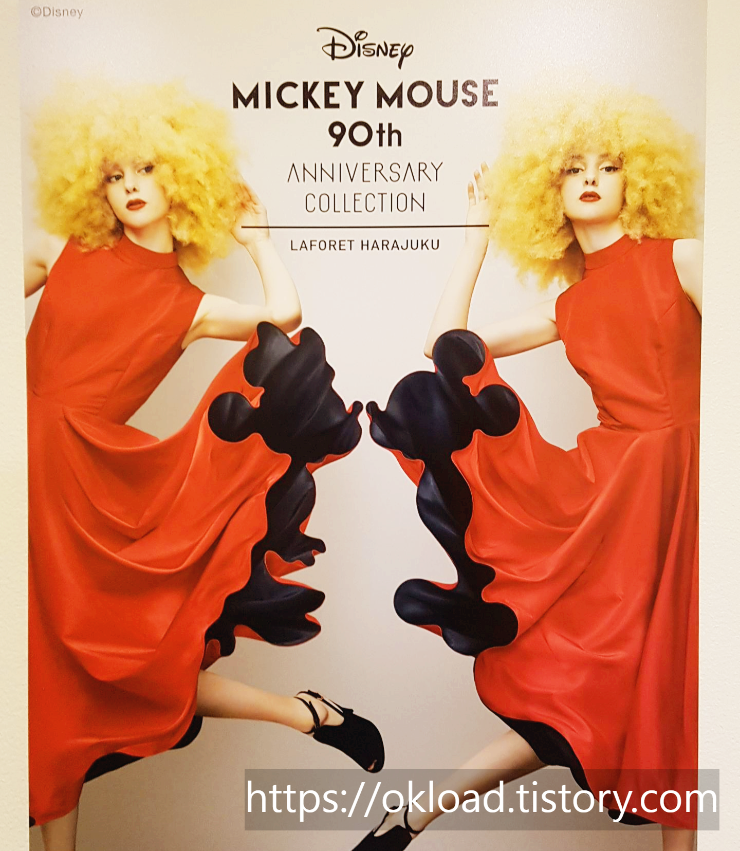 라포레 하라주쿠에서 개최된 미키마우스 스크린 데뷔 90주년 기념 패션 기획의 메인 컷이었다고 한다. 빨간 드레스의 밑단 주름을 모아서 미키와 미니의 실루엣을 표현하였다. 어떻게 이런 발상을 할 수 있는지 신기할 따름이다.