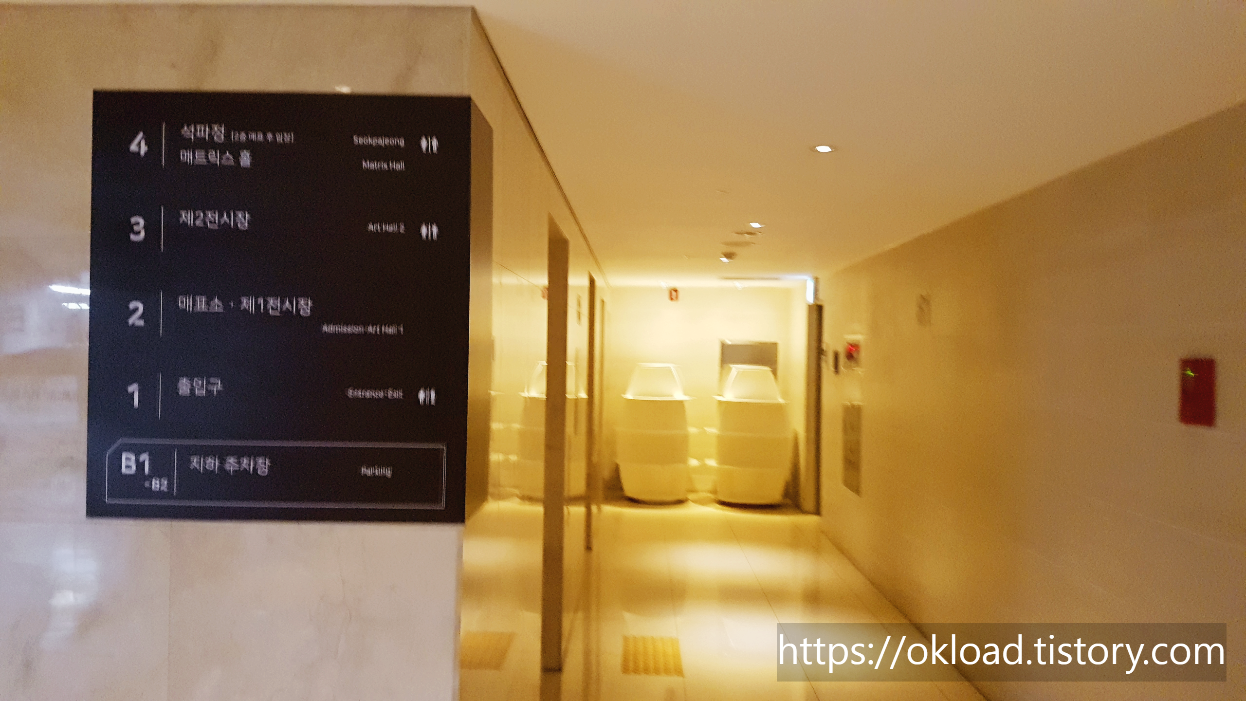 특히, 주말 및 공휴일은 오전에 가야 주차와 미술관 관람을 여유 있게 할 수 있을 거다. 주차장에서 엘리베이터를 타고 2층으로 올라가면, 바로 매표소와 이어진다.