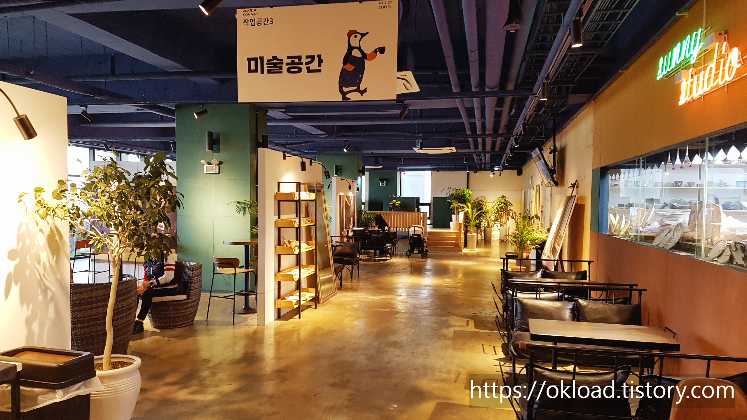1층부터 6층까지 건물을 통채로 사용하는 아파츄어작업실 카페다. 이용안내 층별 소개만 보아도 규모가 어마어마하다는 것을 짐작할 수 있다.