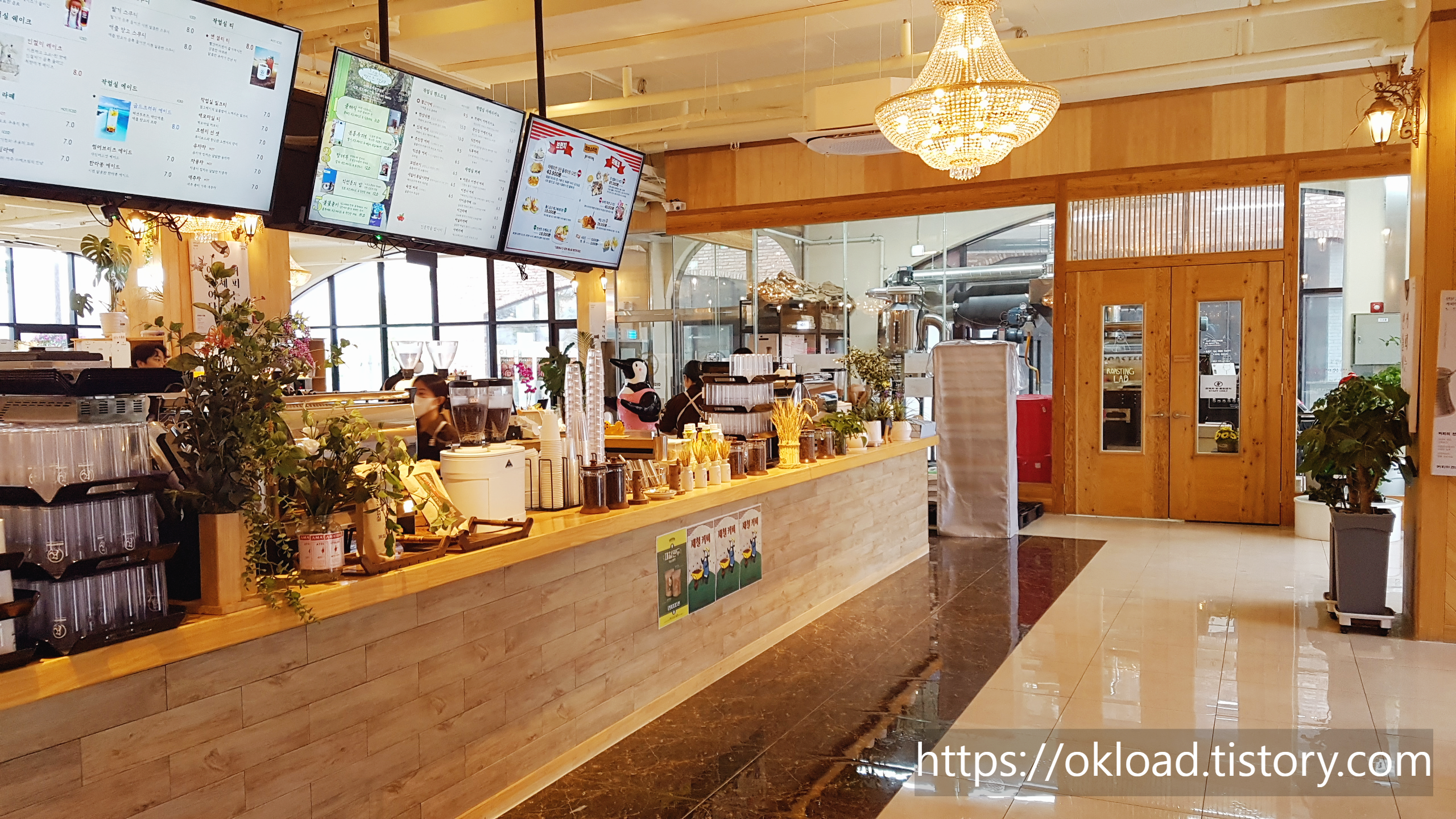1층에는 카운터, 베이커리 제빵공간, 로스팅룸, 빵진열대, 테이블 및 좌석 등이 마련되어 있다. 초대형카페답게 1층에서 빵을 고르고, 주문하는 손님들로 복잡한 경우가 잦다. 주문과 결재를 마쳤다면 2~6층으로 이동하여 자리를 잡자~