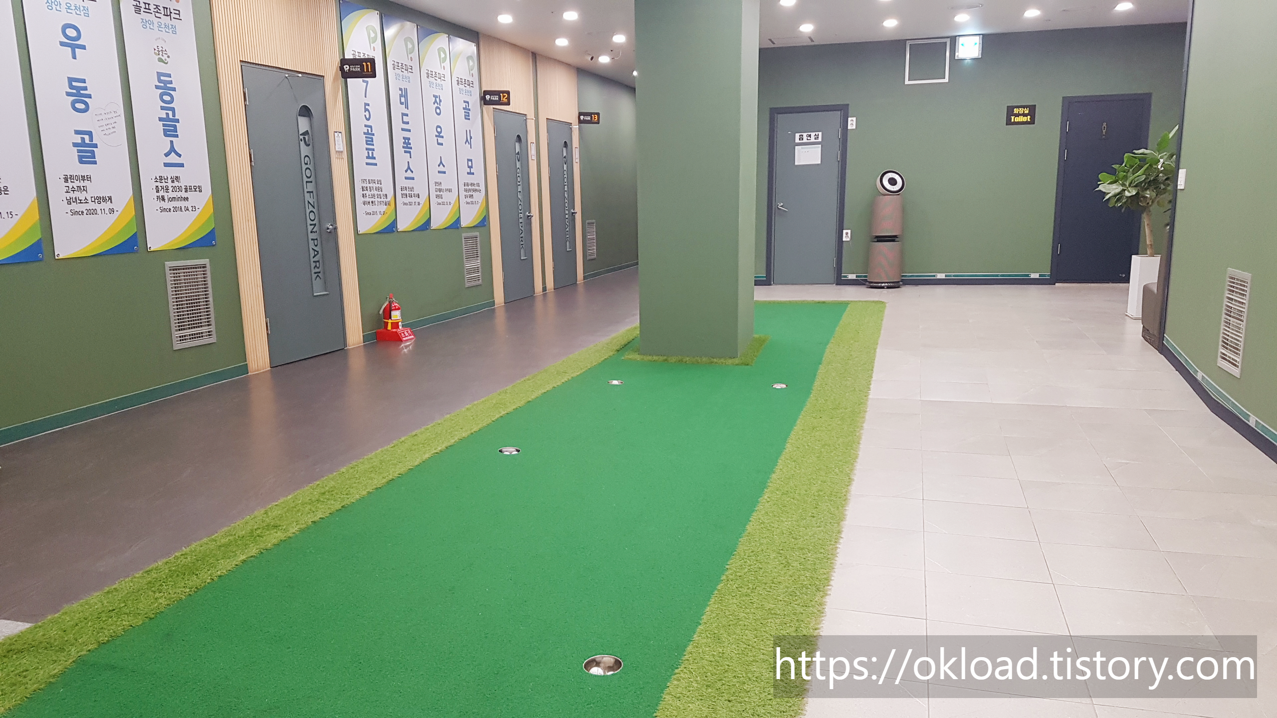 약간의 과장을 더하자면, 가도 가도 끝이 없을 정도로 스크린골프 룸들이 길게 이어져 있다. 아무래도 과거 장안온천으로 이용되었던 장소다 보니 대형스크린골프 규모와 시설을 자랑하는 골프존 장안온천점(장안현대홈타운1차 상가)이다.