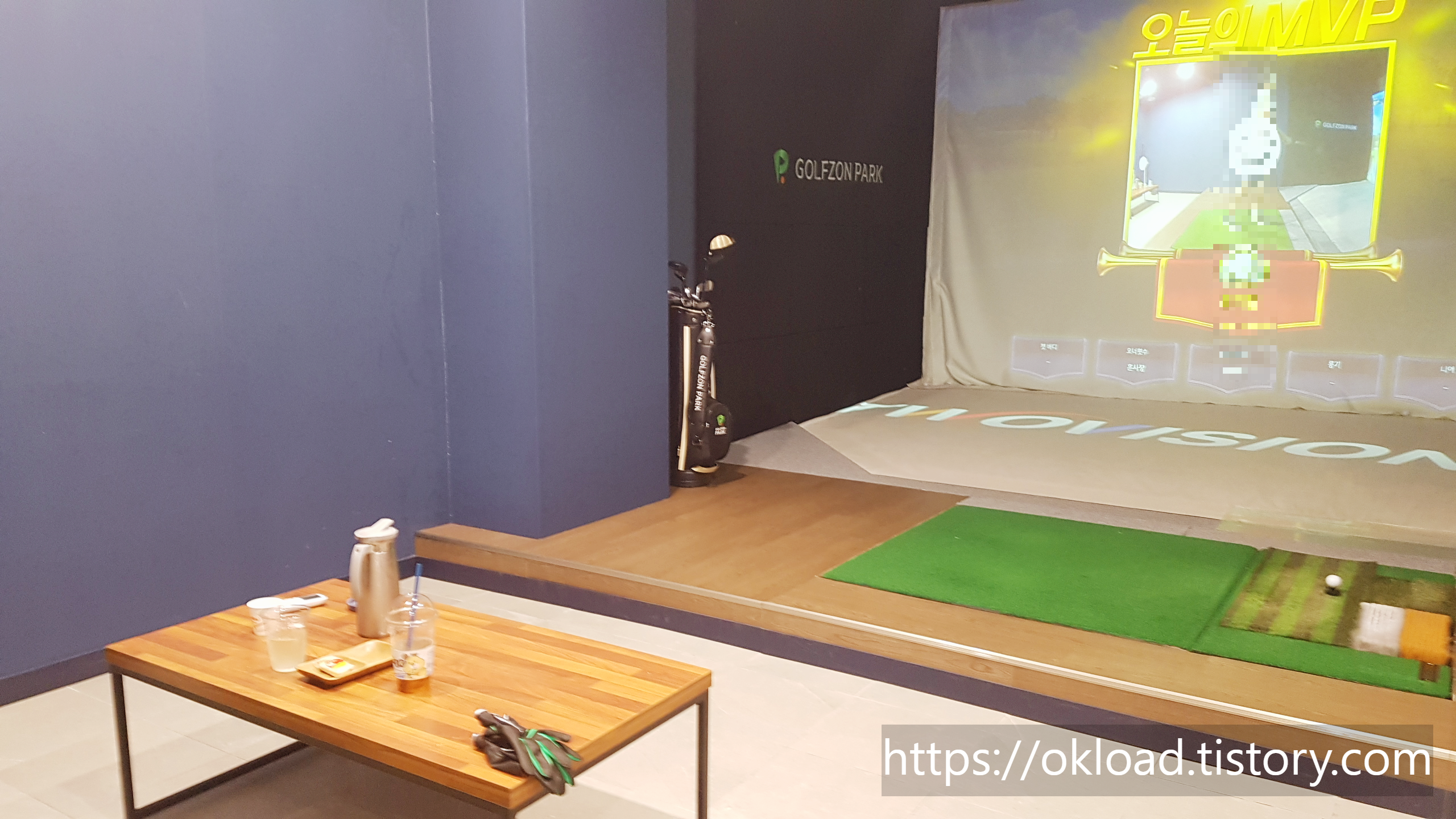 어느 지점을 가든 비슷한 골프존파크의 스크린룸 모습이다. 정형화 시스템화 된 골프존답게 익숙하고 편리하게 기기를 작동하며 게임을 즐길 수 있었다. 게다가 비교적 최근에 갖춰진 시설이라서 깨끗하고 쾌적한 컨디션을 잘 유지하고 있었다.