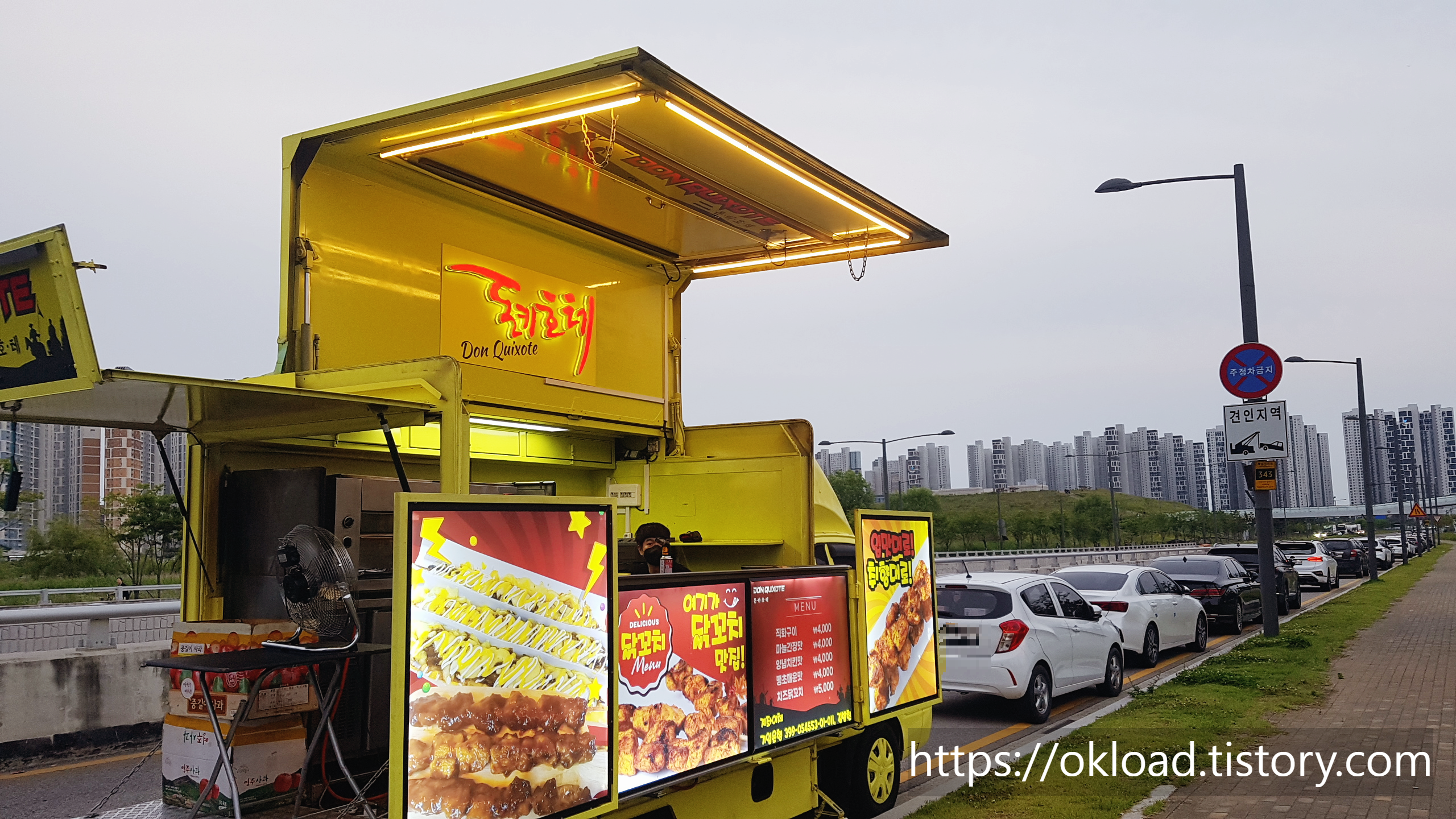 경기 시흥시 배곧 한울공원 갯벌체험장 또는 대형 모래놀이터를 갈 때면 자주 보게 되는 노란색 푸드트럭이 있다. 바로 닭꼬치를 전문으로 판매하는 돈키호테 닭꼬치집(푸드트럭)이다.
