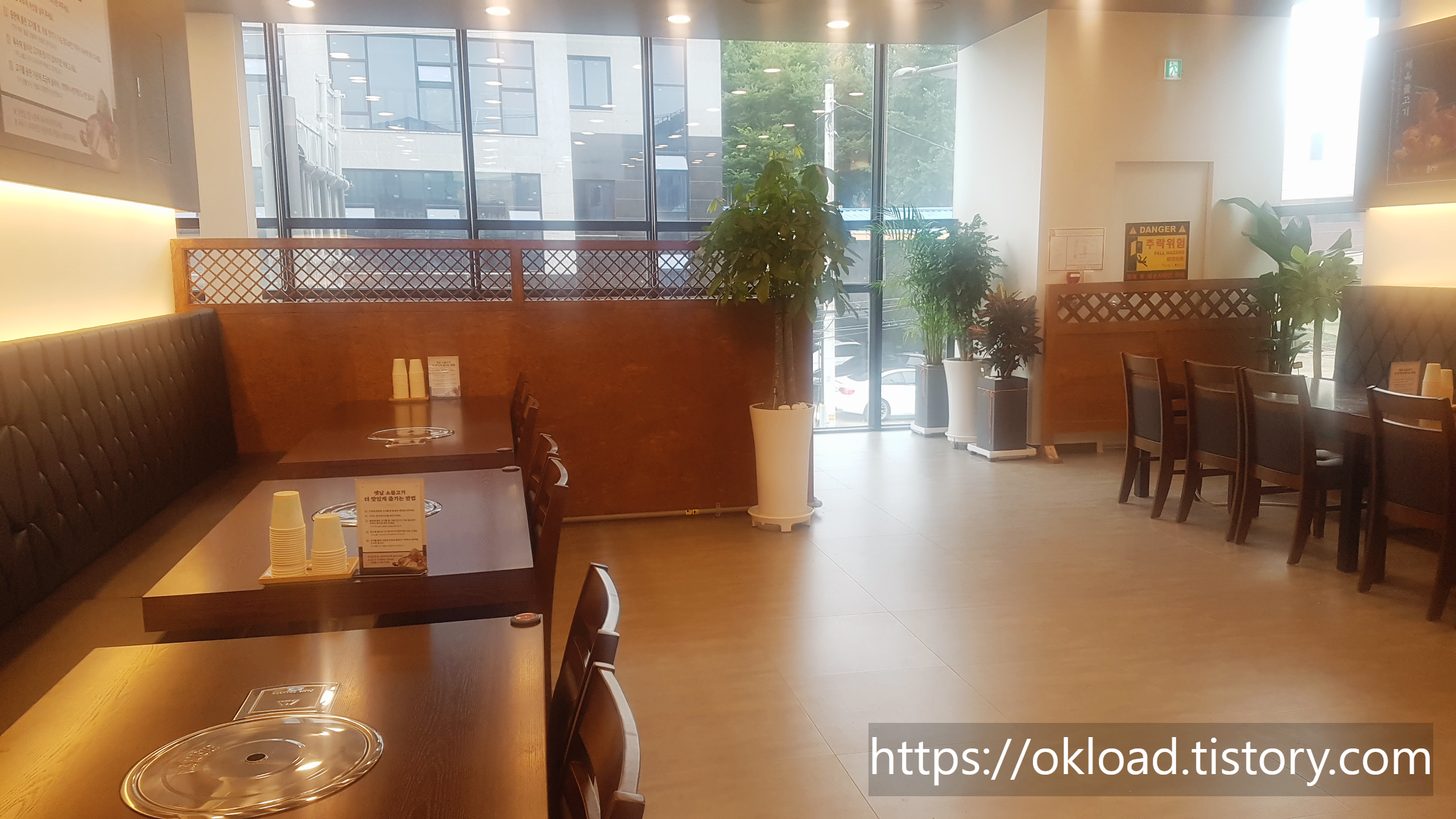 이 때문에 채광이 좋고 밝고 시원한 개방감을 느낄 수 있다. 다만 경치가 조금 아쉬우나, 식당 앞 도로와 그 주변이 지금도 정비되고 개선되고 있으므로 점점 나아지리라고 본다.