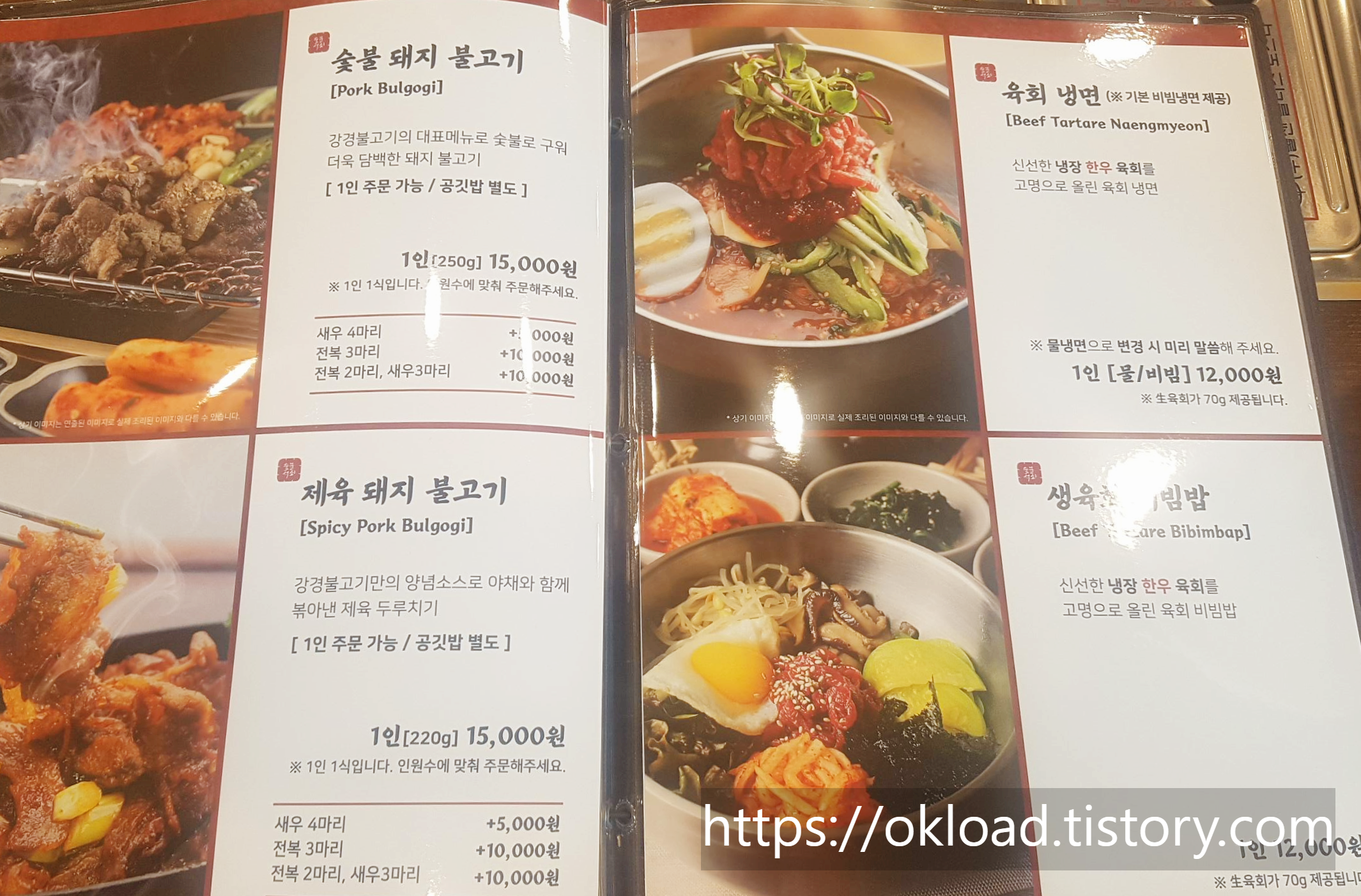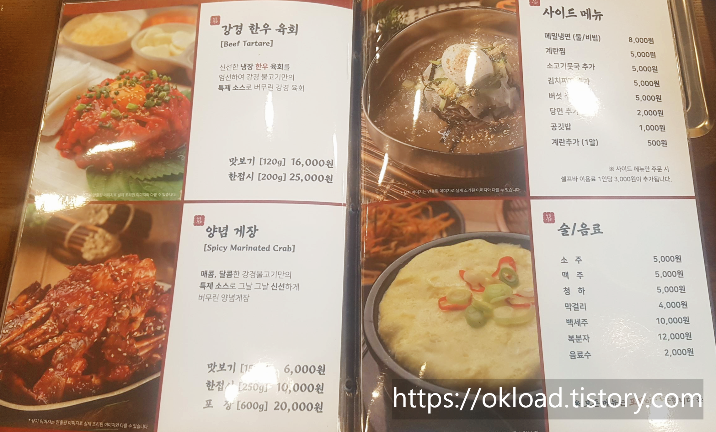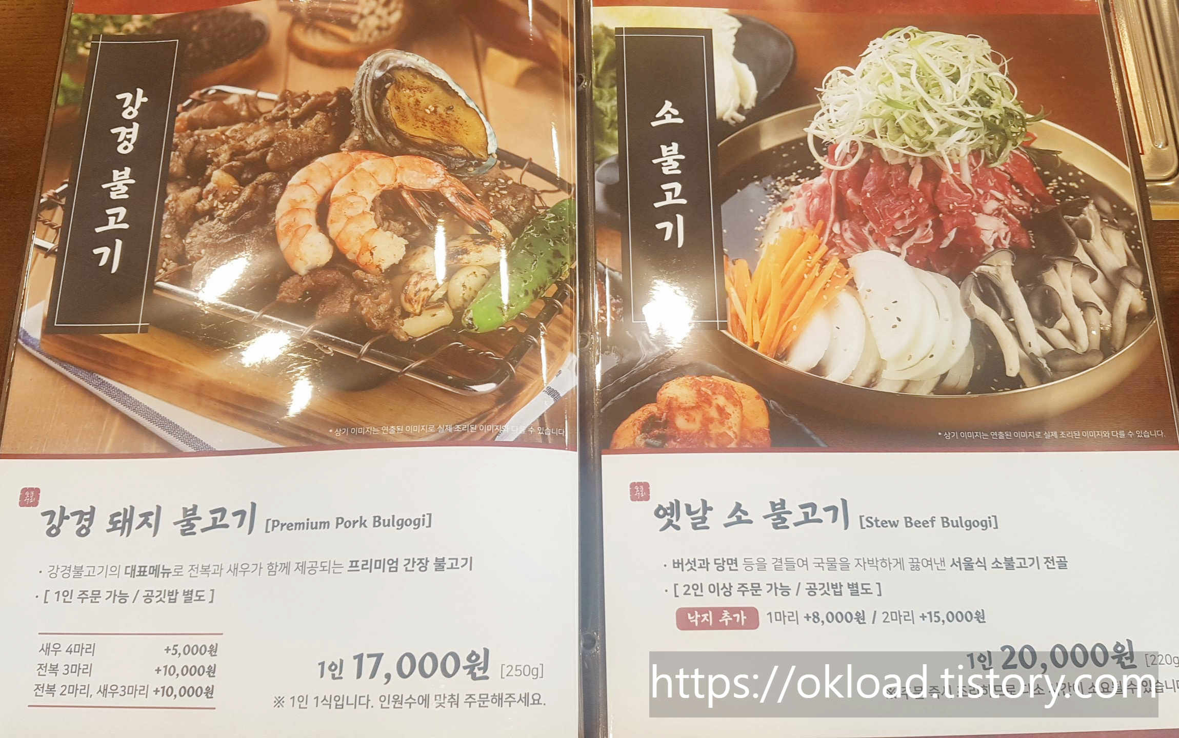 메뉴판에서 사진이 할애된 면적도 이 두 메뉴가 메인에 해당하는 지면을 차지하고 있다.