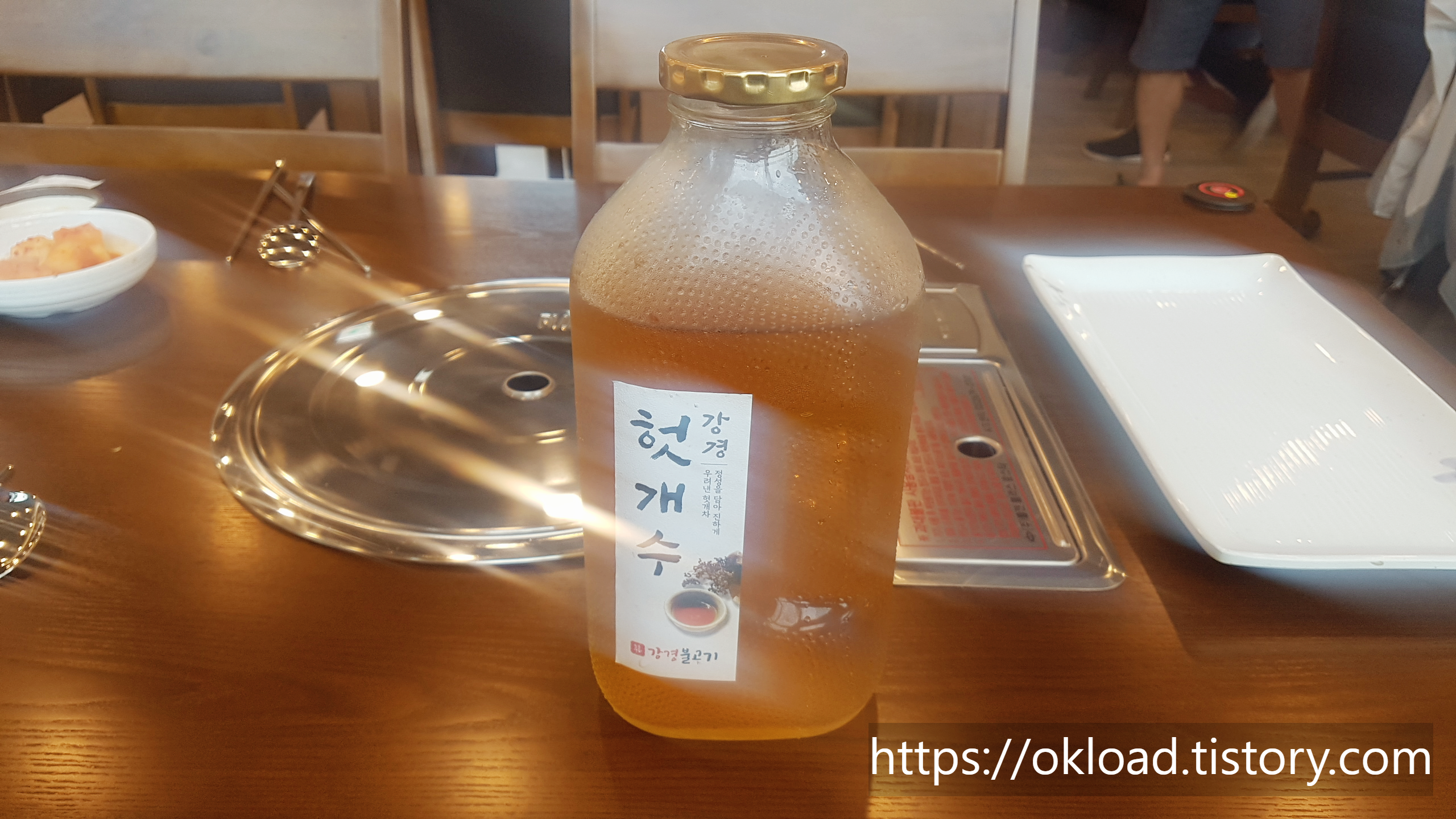 강경불고기의 시그니쳐라고 생각되는 물이다. 일반적인 식당에서 제공되는 생수나 정수기물이 아닌 맛 좋고 건강에도 좋은 헛개수가 고급스러운 유리병에 담겨서 나온다.