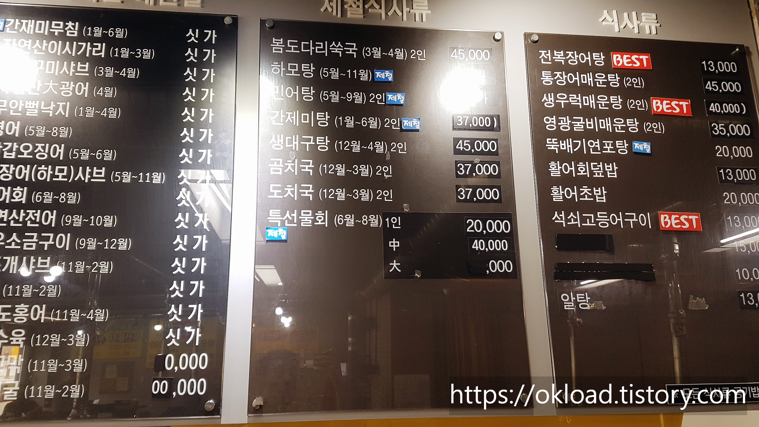 최고급 싱싱한 해산물과 식재료를 취급하는 남배바다장어 식당이다 보니 기본 가격대가 제법 나가는 편이다.