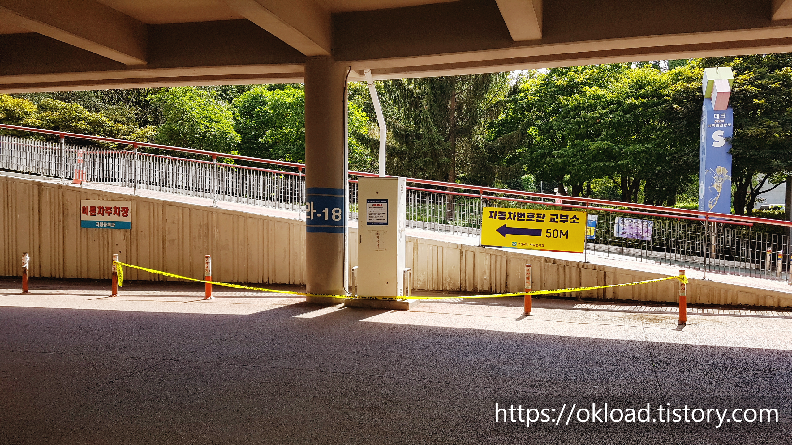 그 앞에 친절하게 차량등록사무소와 관련된 자동차번호판 교부소, 이륜차주차장 등 안내 푯말도 보인다.