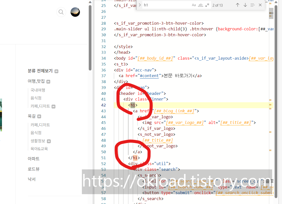 제목검색 H1 태그 기본수정 방법
