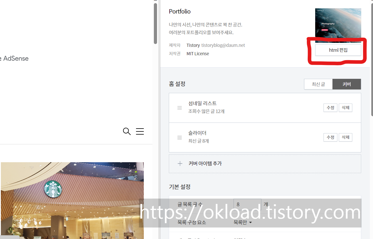'스킨편집'으로 들어간 후 "html편집"을 클릭한다.