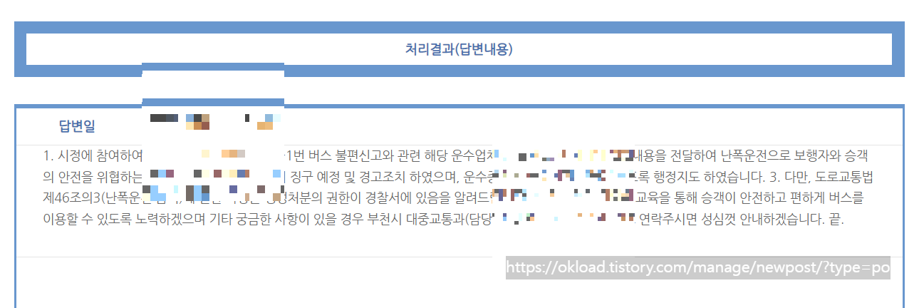 일주일 정도 지났을까. 국민신문고 처리기한에 딱 맞추어서 담당공무원 담당자가 짧고 성의 없는 형식적인 답변을 달았다.