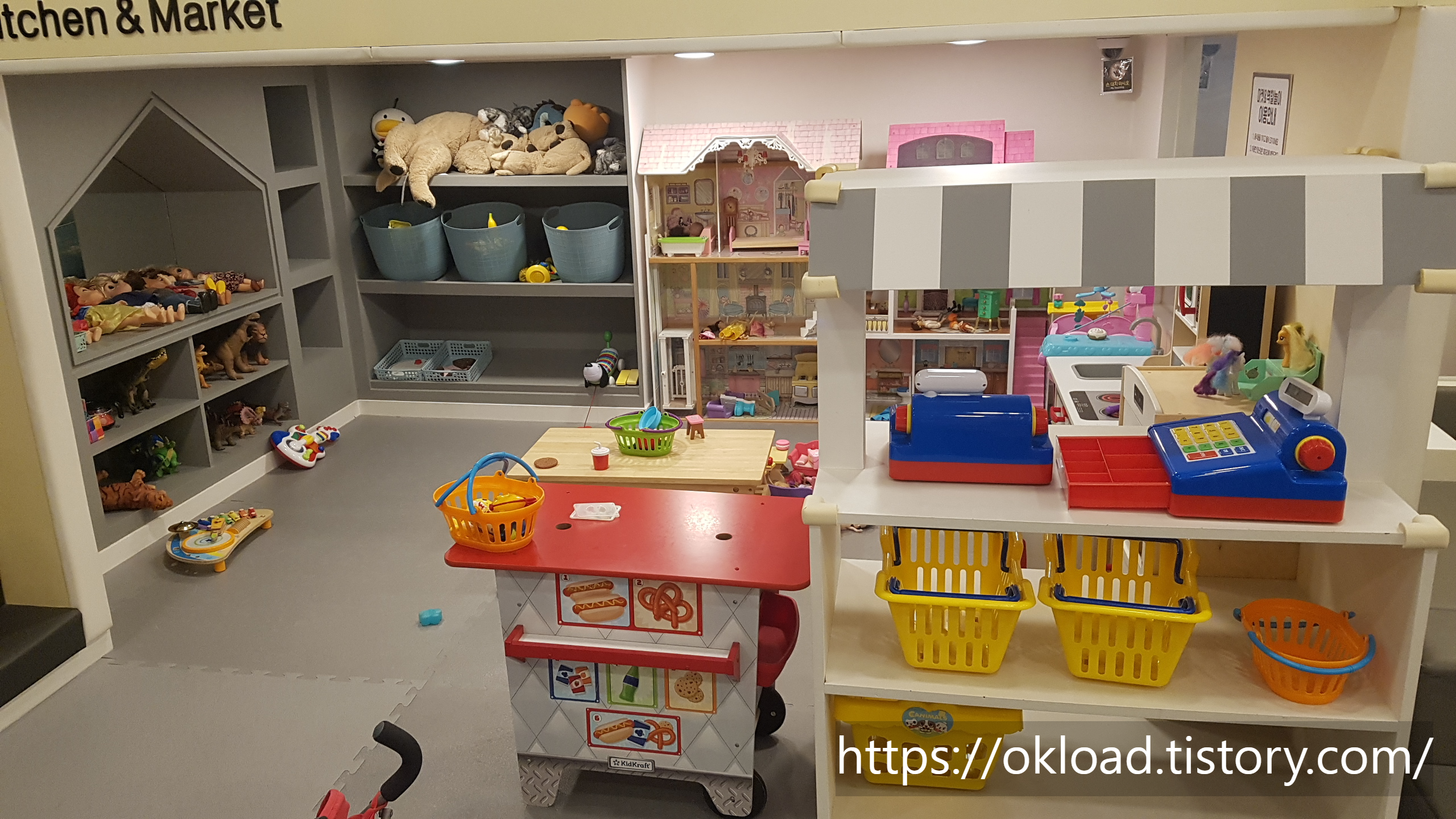 주변의 다른 키즈카페를 안 가봐서 모르겠으나, 이 정도의 수준으로 장사하는 것을 보면, 비슷하지 않을까 싶다. 2시간 결재하고, 1시간 조금 지나서 나와버린 키즈카페. 1시간 이상은 머물고 싶지 않은 키즈카페 후기를 마친다.