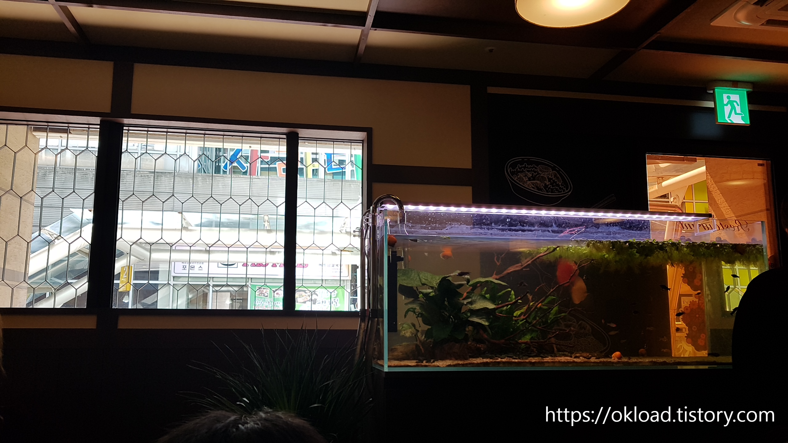 독특하게 출입문을 들어서자 요즘 음식점에서 보기 드문 중소형 수족관이 눈에 들어왔다. 정확히는 출입문 바로 앞에 수족관이 있고, 이 수족관 옆으로 돌아가야 홀 테이블에 앉을 수 있는 구조다. 자칫하면 음식점 안의 수족관이 올드한 낡은 이미지를 풍길 수 있으나, 솔솥 음식점의 수족관은 오히려 몽환적이면서도 세련된 분위기를 자아냈다. 전반적인 매장의 인테리어와도 잘 어울렸다. 물고기 문외한인 내가 보아도 어항 속 어류들은 독특한 생김새와 더불어 고급스러워 보였다. 테이블을 방향으로 사진은 차마 찍을 수 없었다. 워낙 손님들이 많아서, 차마 맛있게 음식을 먹고있는 사람들을 향해서 사진을 못찍었다. 내가 싫은 건, 남도 싫을테니.