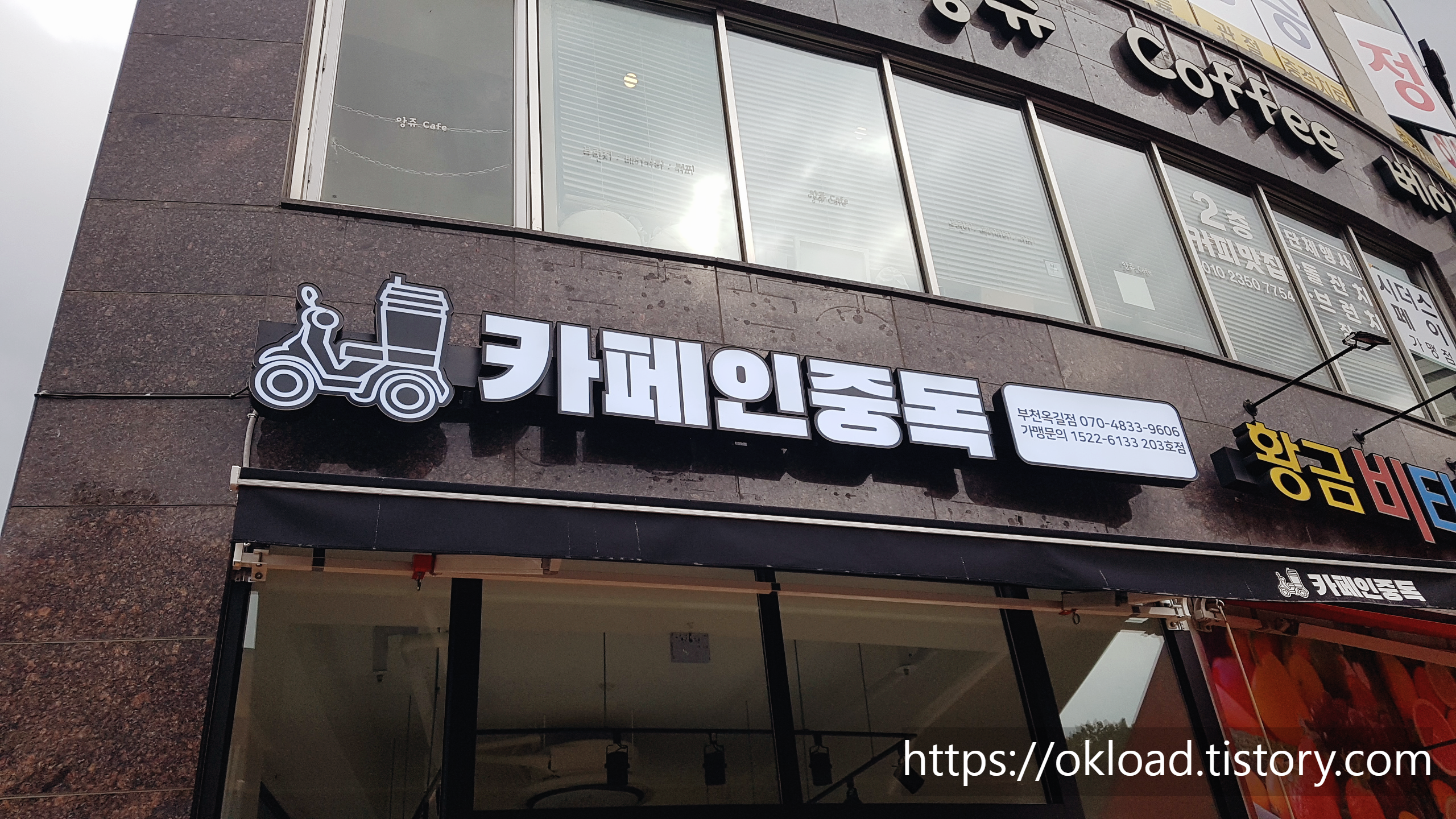 카페인중독 부천옥길점은 옥길지구 상권 내에서도 가장 핫하다고 볼 수 있는 부천시립 별빛마루도서관과 벽계수스파(퀸즈파크)와 매우 가까운 위치에 있다.
