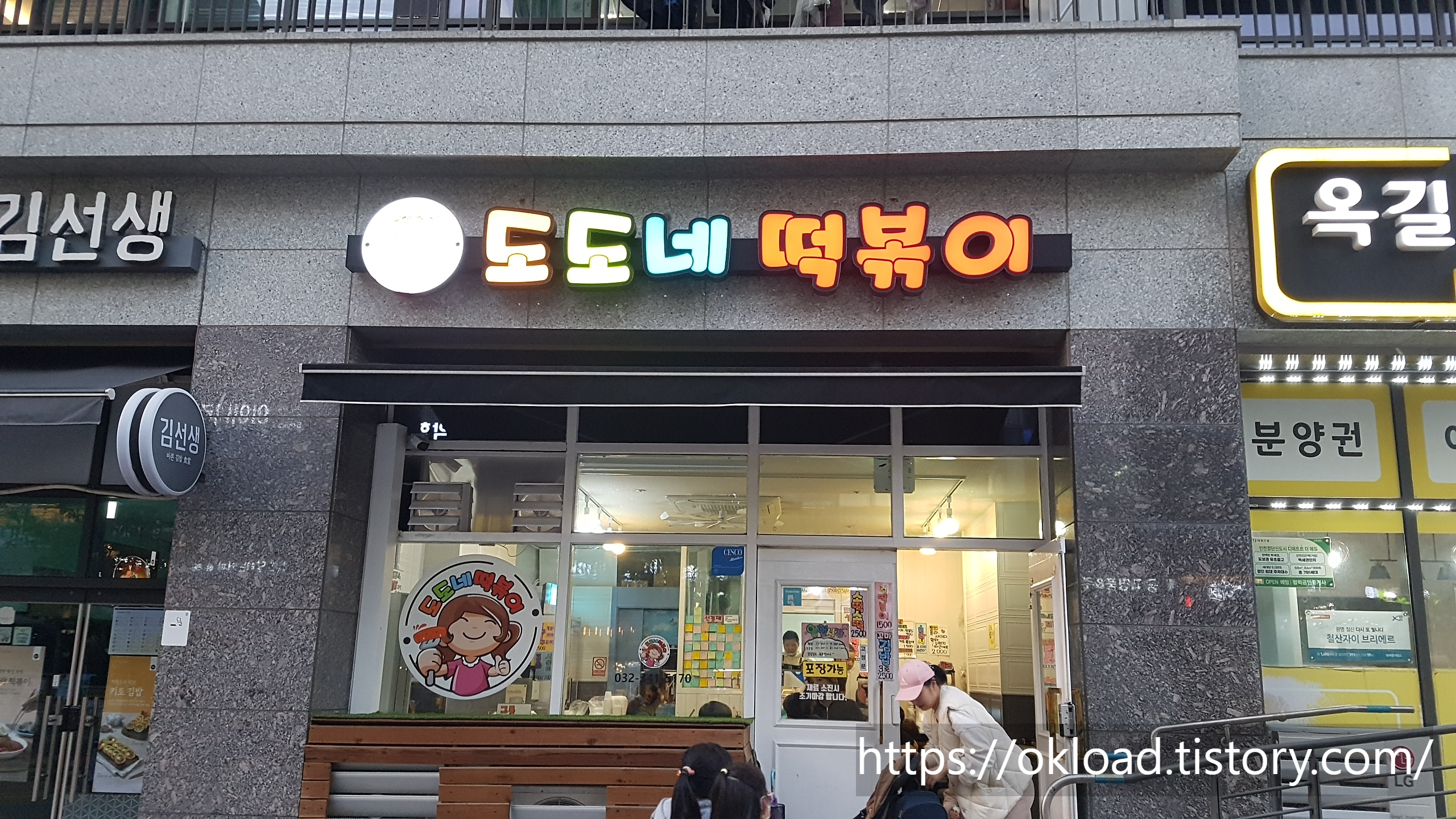 도도네떡볶이는 부천옥길자이 아파트 상가건물 1층에 입점해 있다. 평소 통행량이 많고, 특히 유아나 어린이를 동반한 일행이 많이 지나다니는 길이기도 하다.