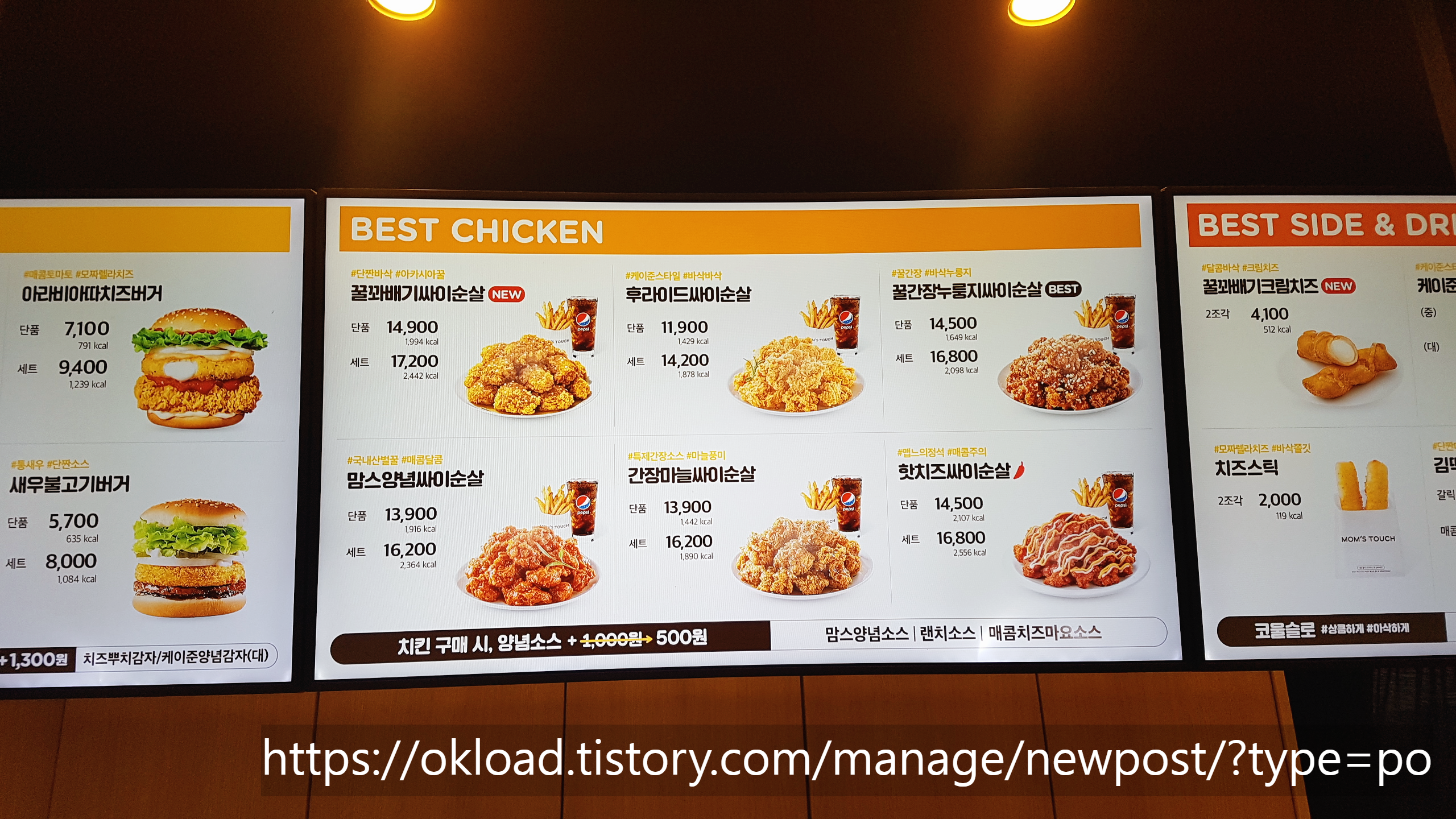 그나마 건강에 끼치는 악영향이 적다고 판단되어 이용하는 맘스터치 햄버거와 치킨이다. 우리 가족이 패스트푸드가 먹고 싶을 때 종종 방문하는 맘스터치 메뉴와 가격에 대해서 정리해 본다.