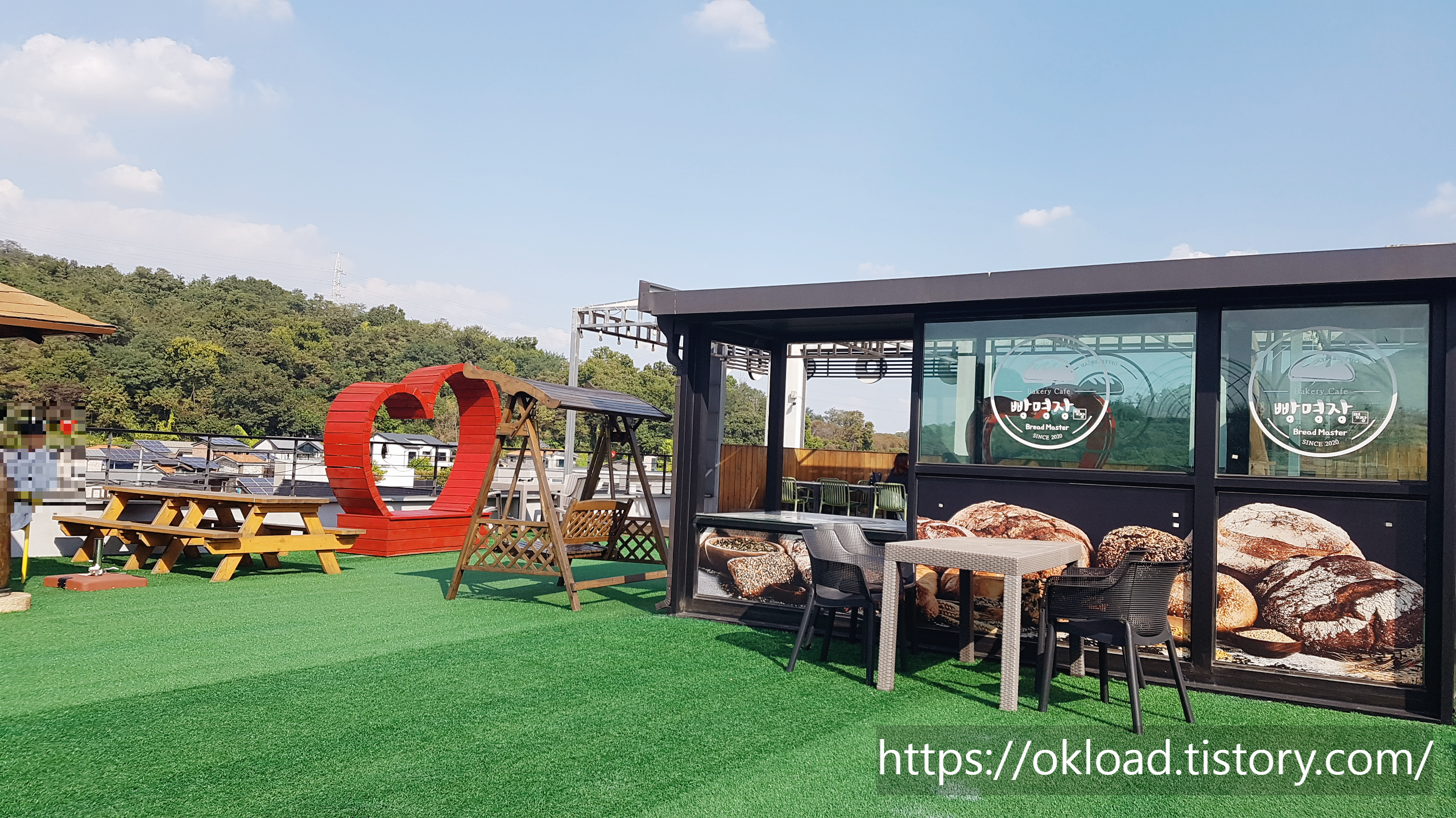 광명 하안동 대형카페 빵명장에서 가장 마음에 들었던 장소는 다름아닌 옥상 루프탑이었다. 실내에 앉아있기에는 억울함이 느껴질 정도로 매우 좋은 날씨였는데, 사방이 확 트인 루프탑에서 바라보는 광명시의 전경이 아름다웠다.