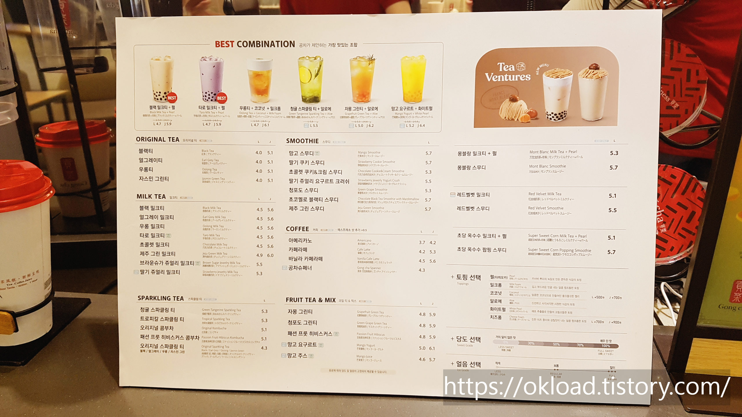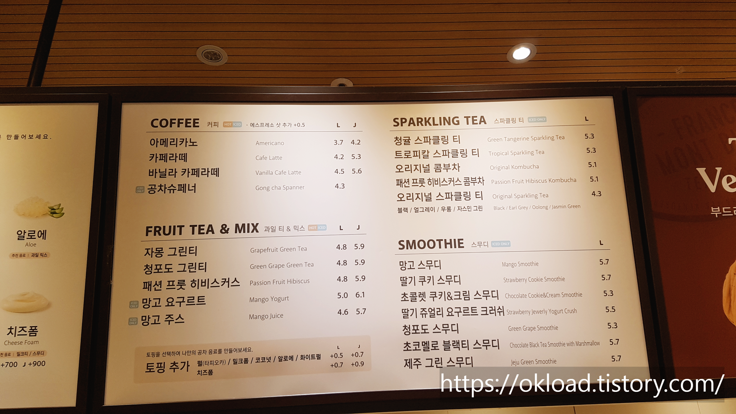 나보다 아이 때문에 자주 방문하는 버블티와 밀크티 맛집 카페 공차다. 아마스빈 버블티와 더불어 버블티카페 시장을 주도하는 곳이 공차라고 생각된다.