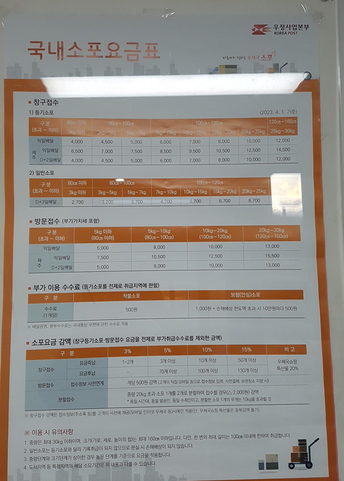 우리 동네 우체국 우편취급국의 위치와 영업시간, 업무내용, 무게별 소포가격, 주의사항 등에 관해서 정리해 보았다.