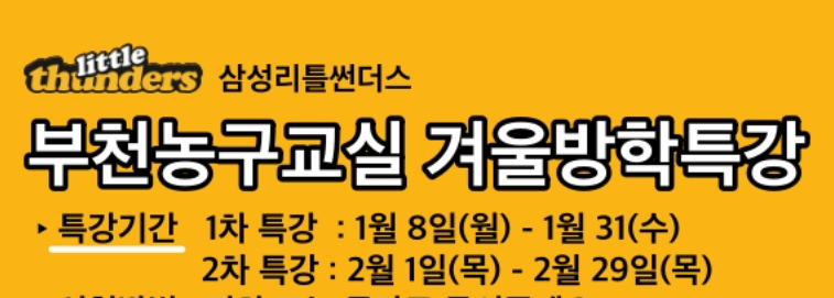 부천에서 초등학생이 농구수업을 받을 수 있는 농구교실 삼성리틀썬더스다. 겨울철 대표 스포치인 농구는 성장기 아이에게 특히 도움 되는 운동이다.