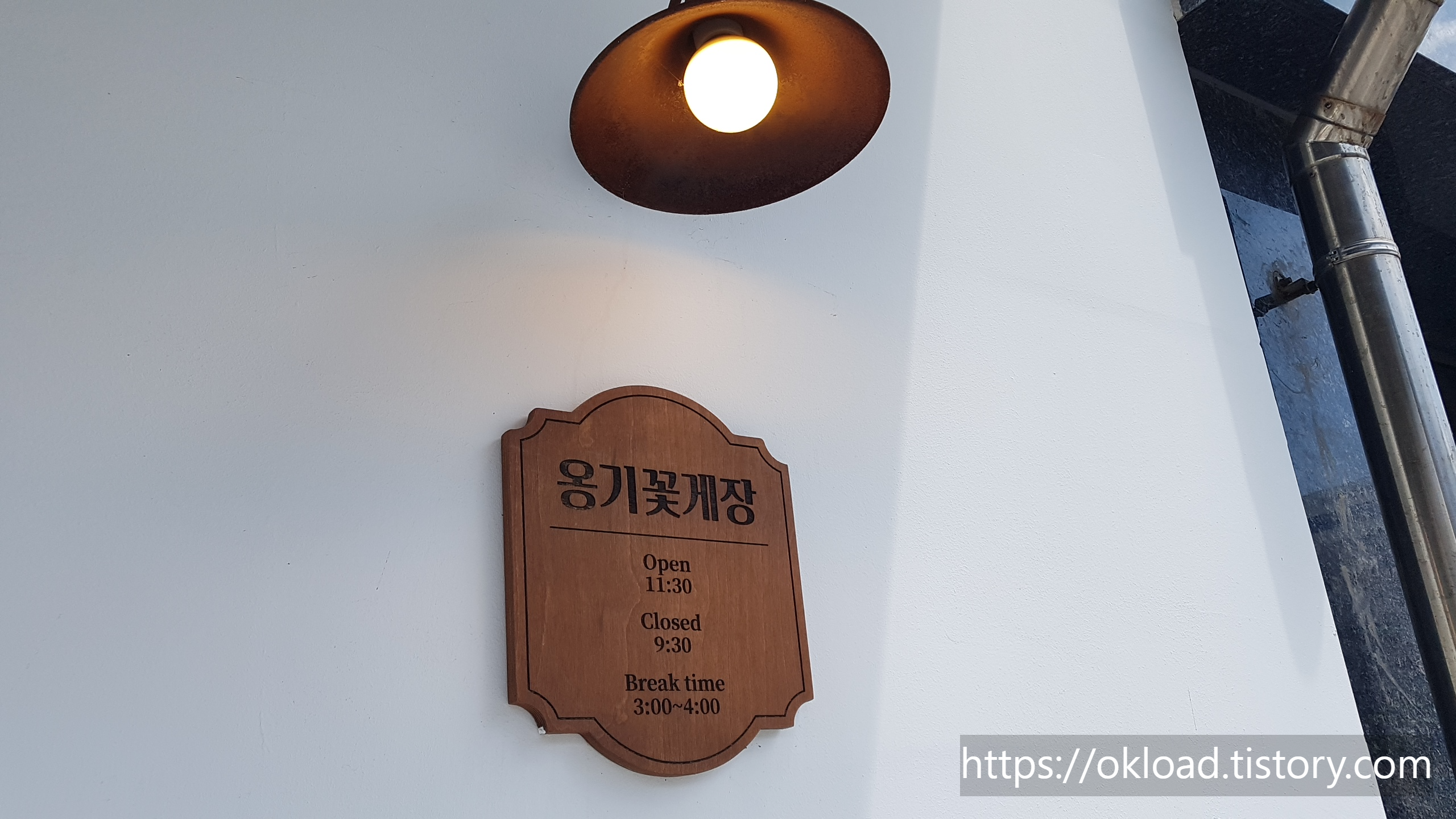 처음 보았을 때 단순히 옹기꽃게장 브랜드를 표시하는 부착물로 보였으나, 자세히 들여다보니 영업시간에 대한 안내판 이었다.