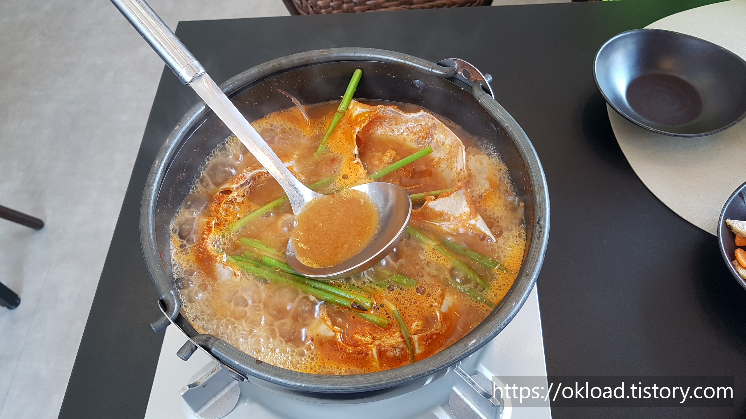 나는 가장 먼저 밥 한 숟가락과 반숙 계란후라이를 애피타이저로 시식하고, 본격적으로 메인 요리인 꽃게탕을 먹기 시작한다. 사진을 보니, 또 먹고 싶다..
