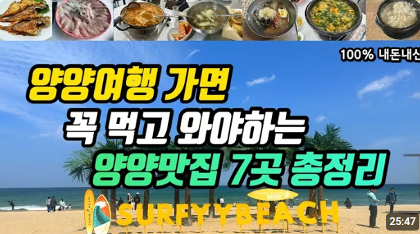 우리 가족에게는 더 없이 만족스러운 양양쏠비치며, 매년 1회 이상은 방문하는 리조트라서 쏠비치양양 리조트와 주변 음식점을 여러 곳 가보았다.