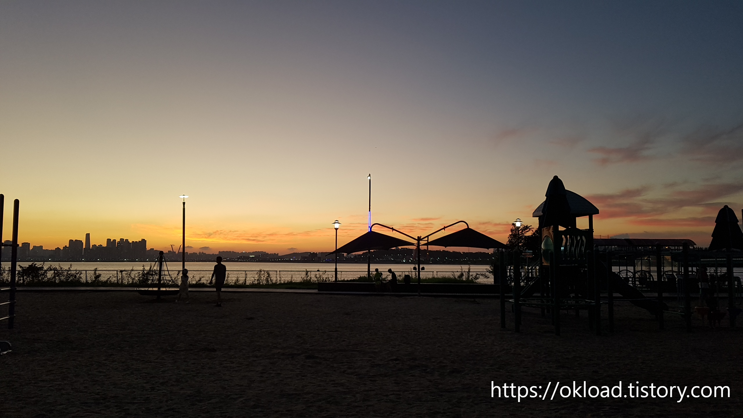 시흥 배곧한울공원을 찾는 이유가 아름다운 일몰도 있지만, 그 보다 이 노을을 배경 삼아 대형 놀이터에서 뛰노는 아이들을 함께 감상할 수 있다는 것이다. 사진에 한 번에 담기 어려울 정도로 대형 모래놀이터다.
