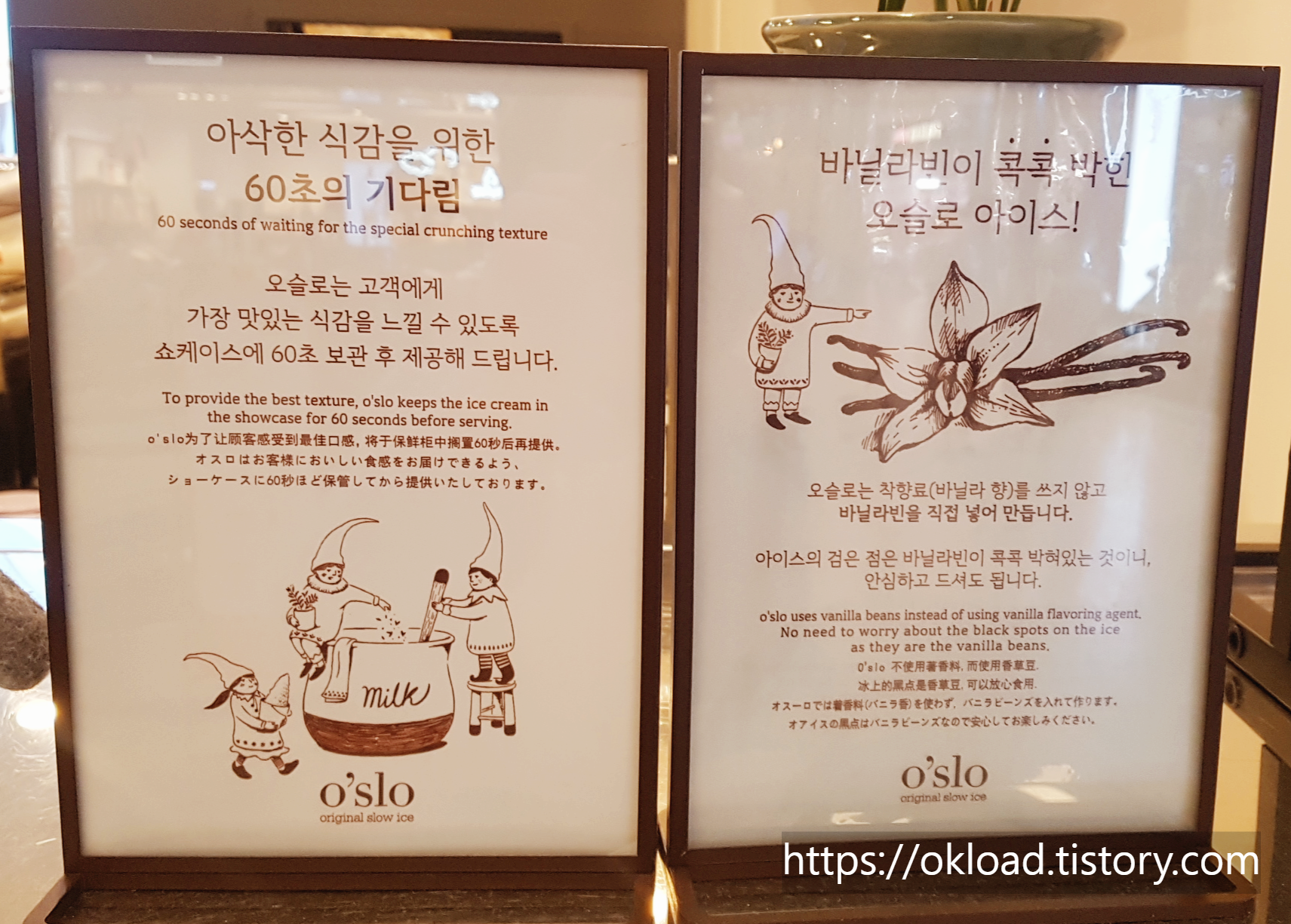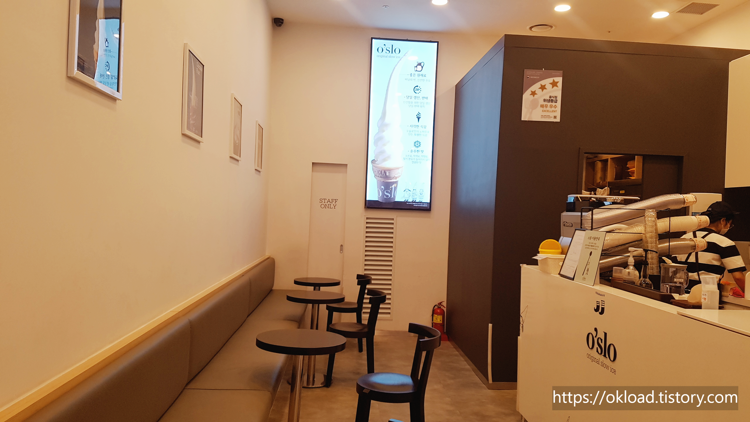 가장 맛있는 식감을 느낄 수 있도록 쇼케이스에 60초 정도 잠시 보관 후 아이스크림을 손님에게 건넨다고 한다. 아삭한 식감을 위한 60초의 기다림을 추구하는 오슬로다.