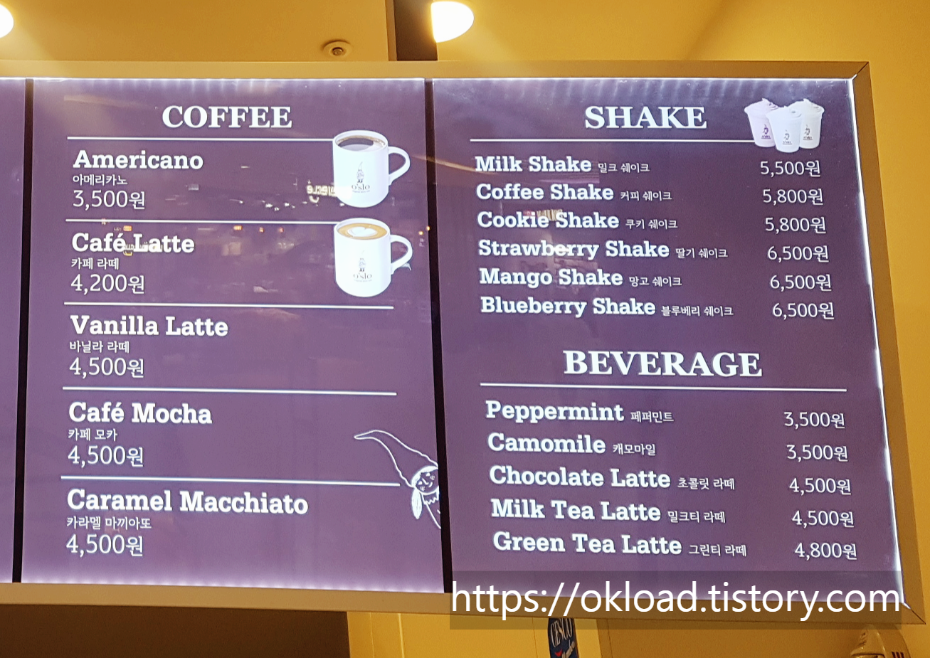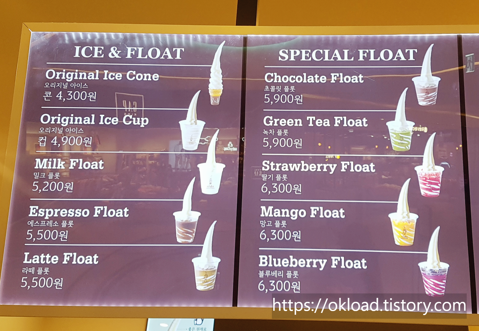 오슬로 아이스크림 카페 메뉴와 가격에 대한 정보를 소개한다.