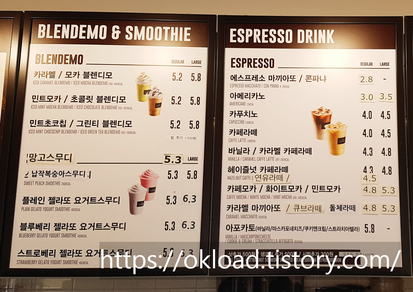 음료 커피 메뉴 가격 종류