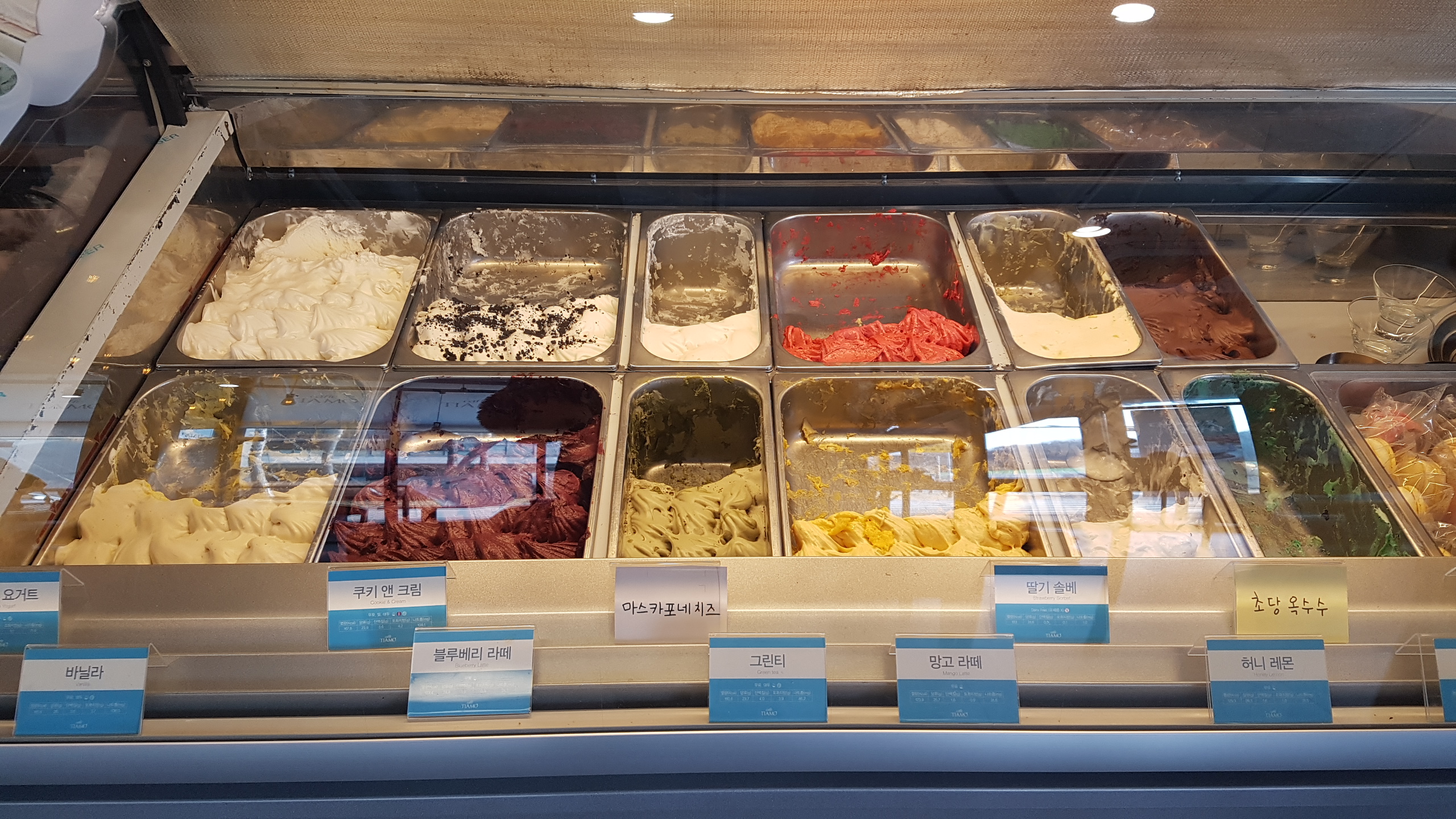 띠아모 카페의 가장 큰 강점이자 대표 메뉴는 아이스크림 젤라또가 아닐까 싶다. 직접 먹어보지는 못하였지만, 보이는 것만으로도 쫀득쫀득하고 진하고 깊은 맛의 젤라또로 보인다.