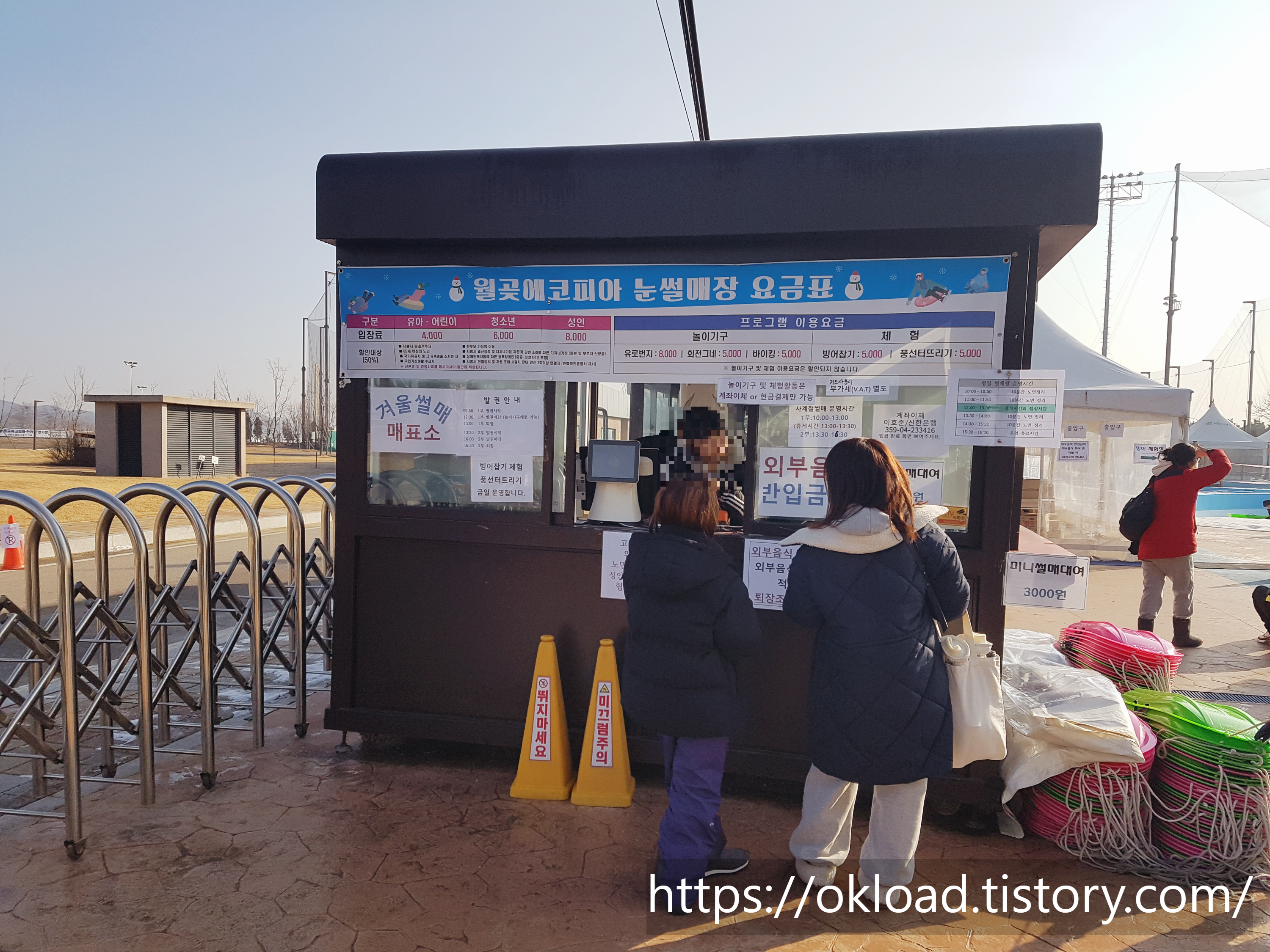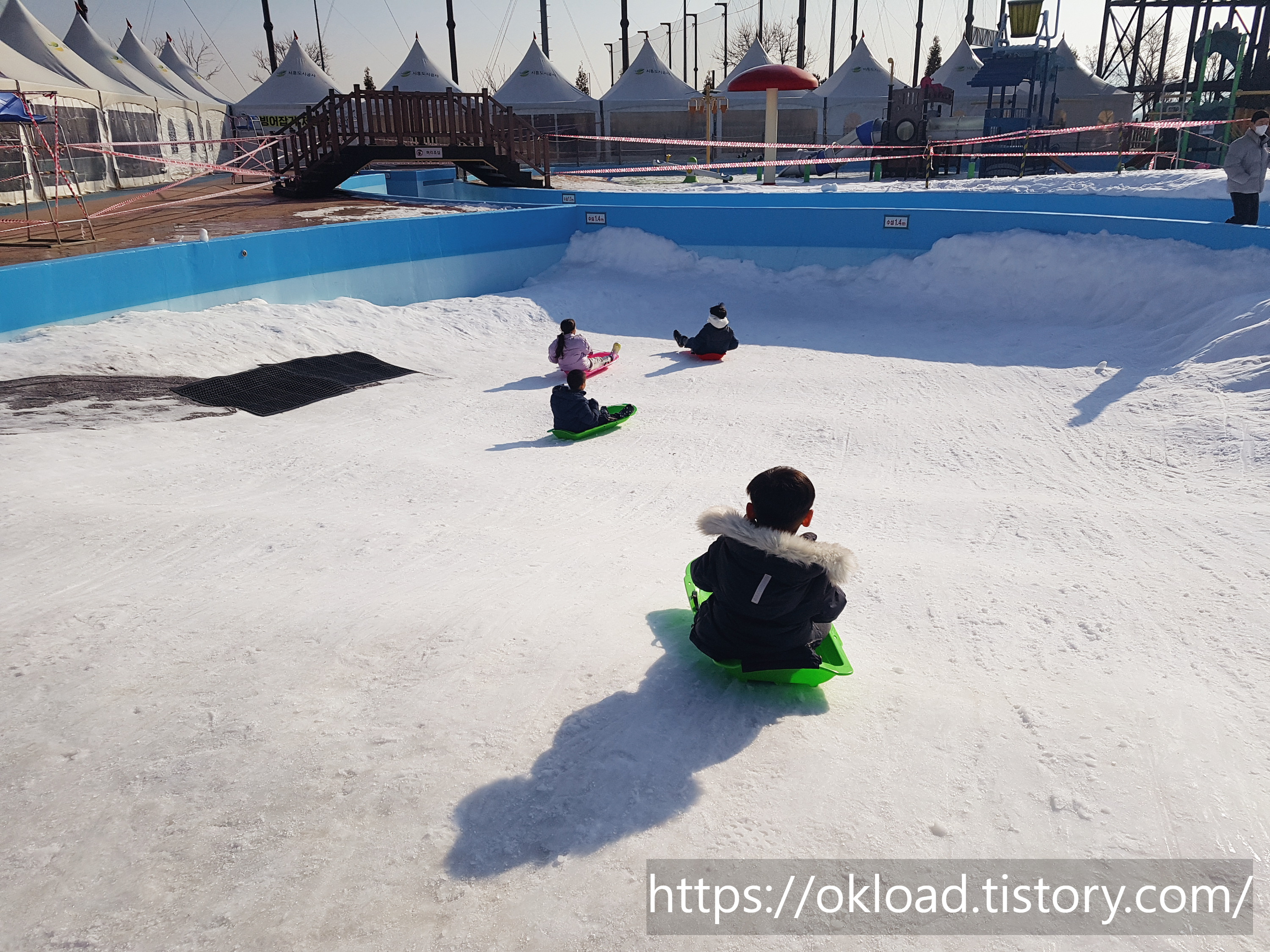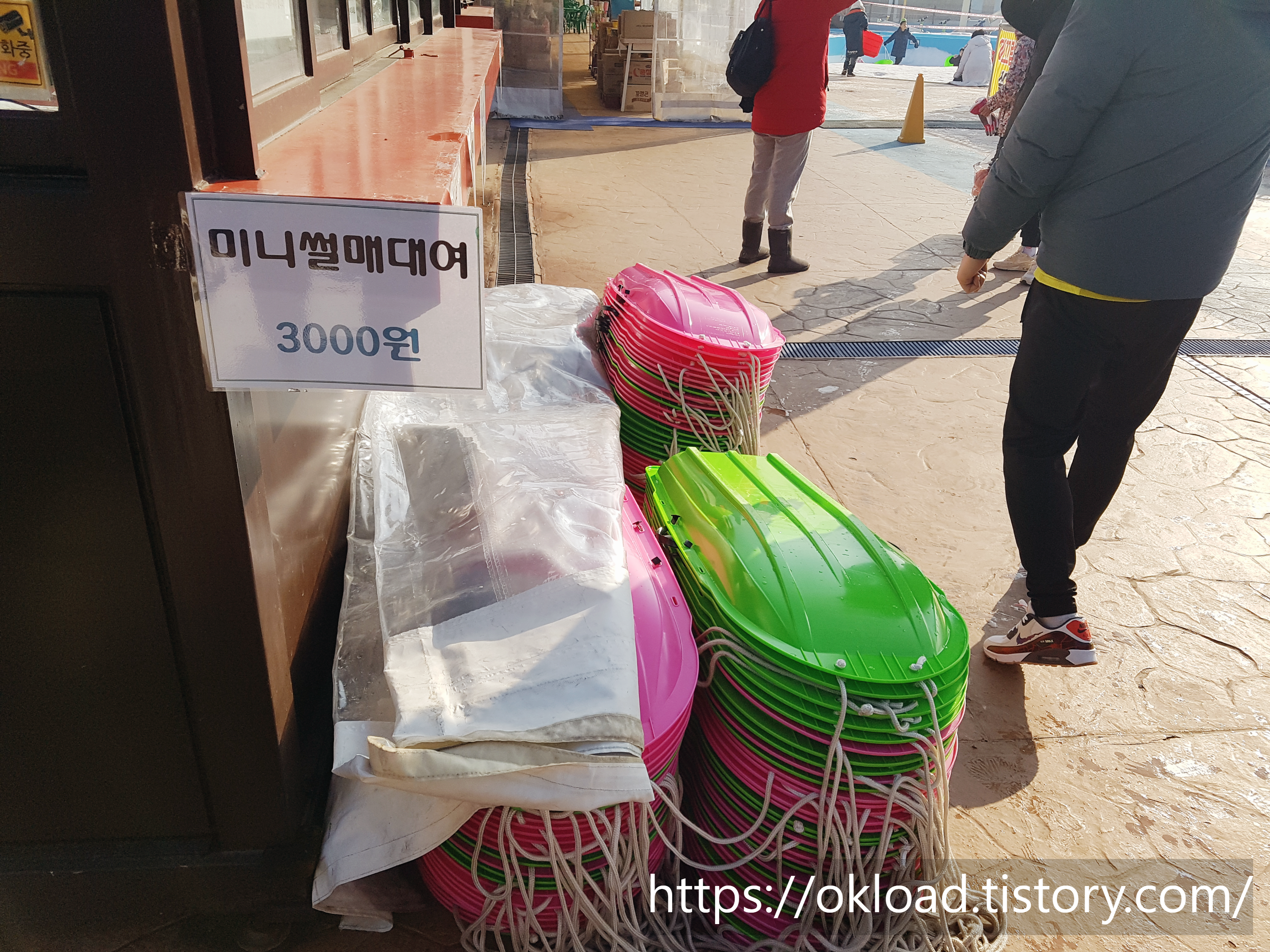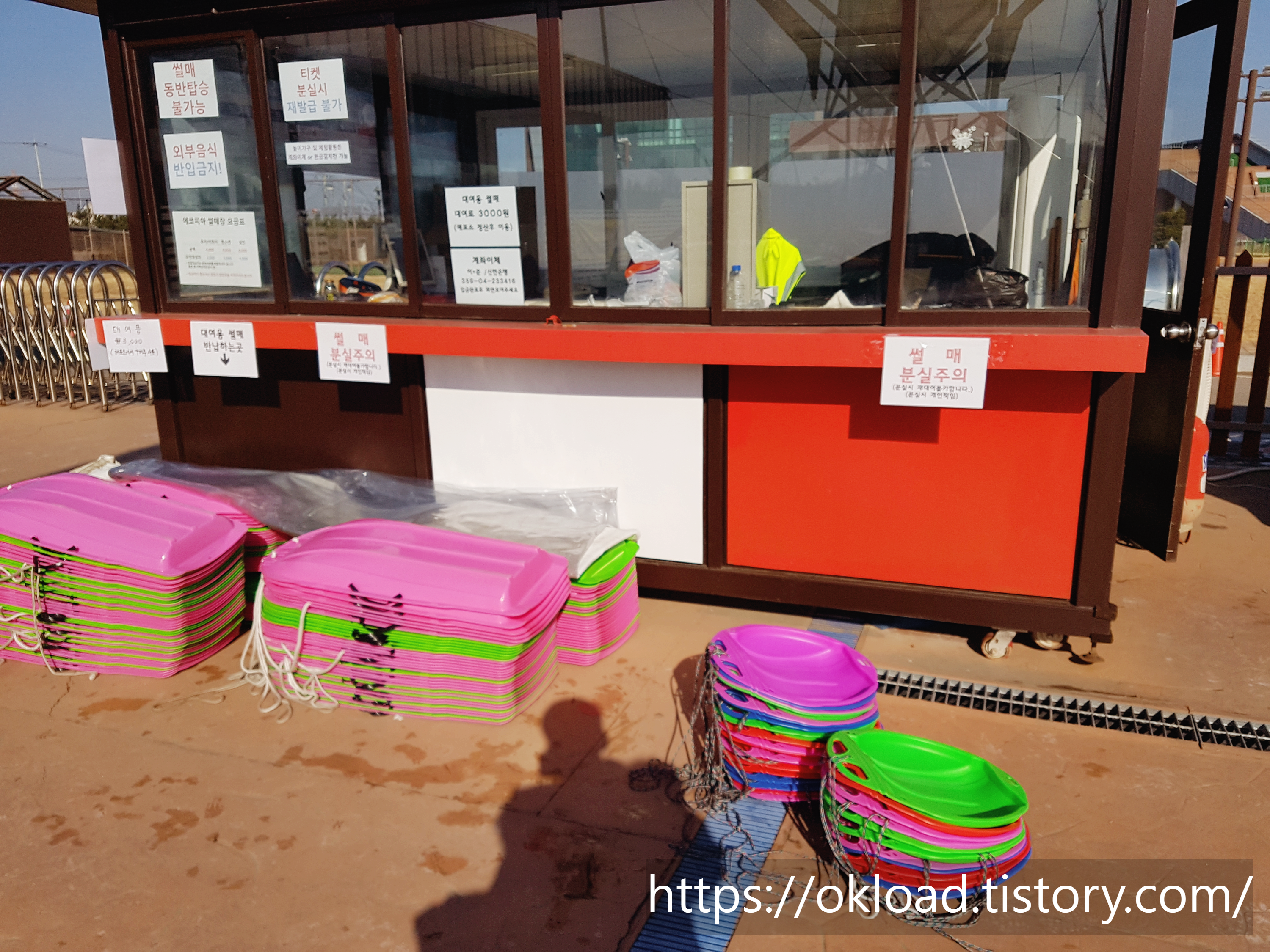 단, 어린 아이들이 타는 플라스틱 썰매는 대여료 3천 원을 추가로 결재해야 이용할 수 있고, 튜브형 눈썰매는 별도의 대여료가 없다. 플라스틱 썰매 3,000원 / 튜브썰매 무료.