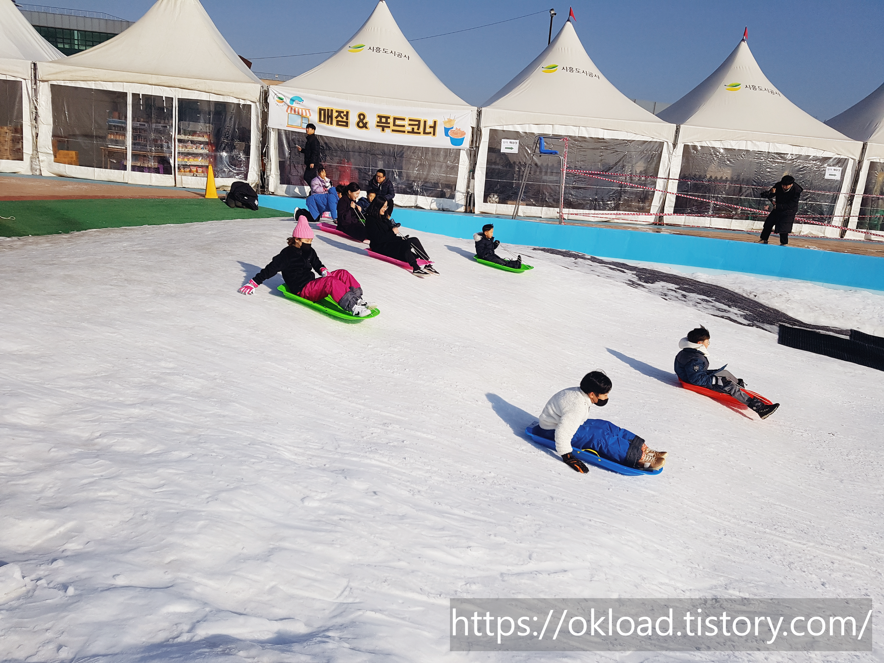 서울에서도 가까운 경기도 시흥시 월곶에코피아 눈썰매장은 아이들의 연령과 수준별로 마련된 눈썰매 코스를 운영하고 있어서 많은 사랑을 받는 눈썰매장이다.