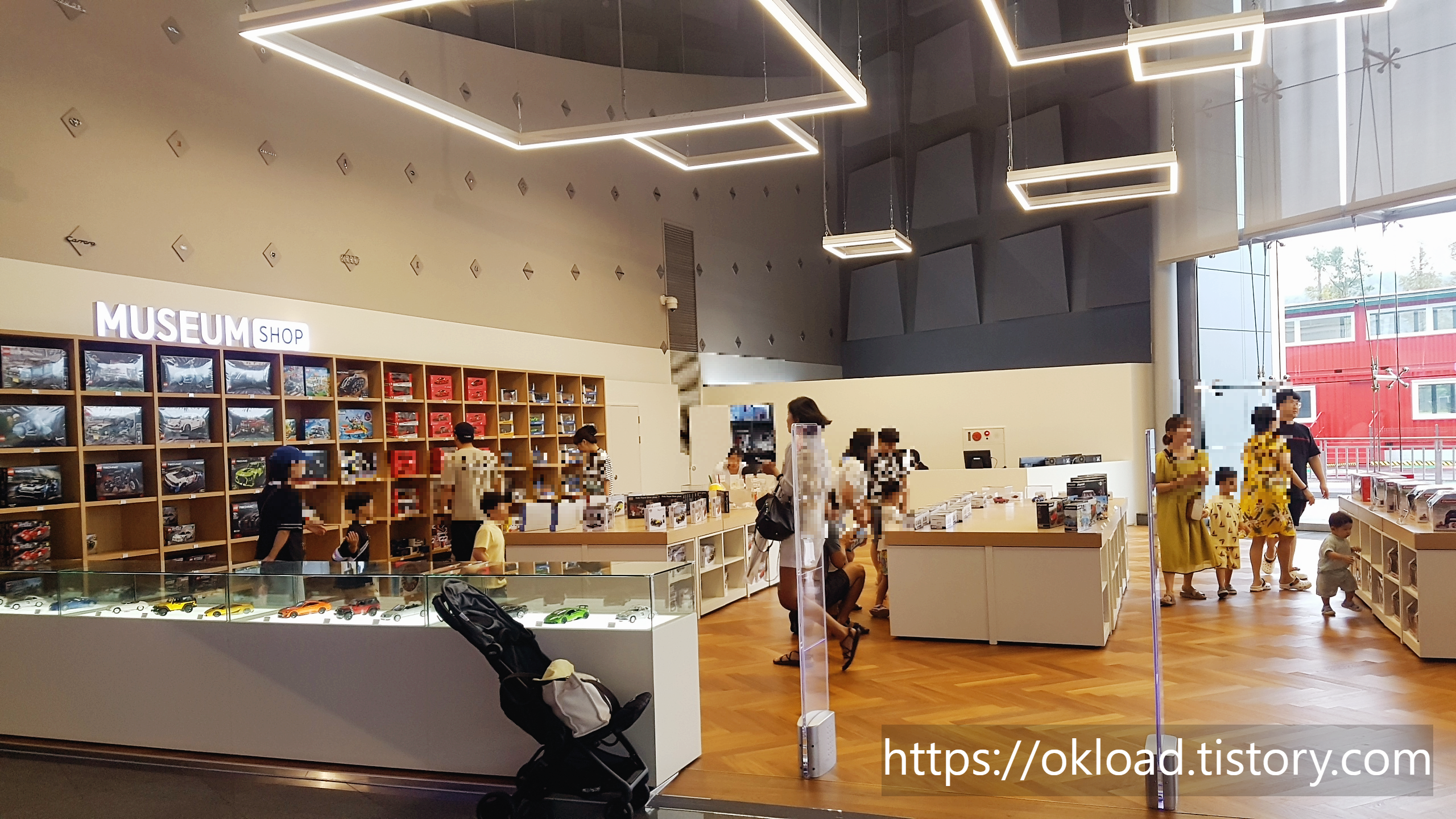 자동차박물관 매장답게 대부분 자동차와 이동수단이 중심인 장난감들이 진열되어 있다. 저렴한 미니카부터 10만원을 훌쩍 상회하는 고가의 정교한 자동차 모형까지 선택범위가 넓다.