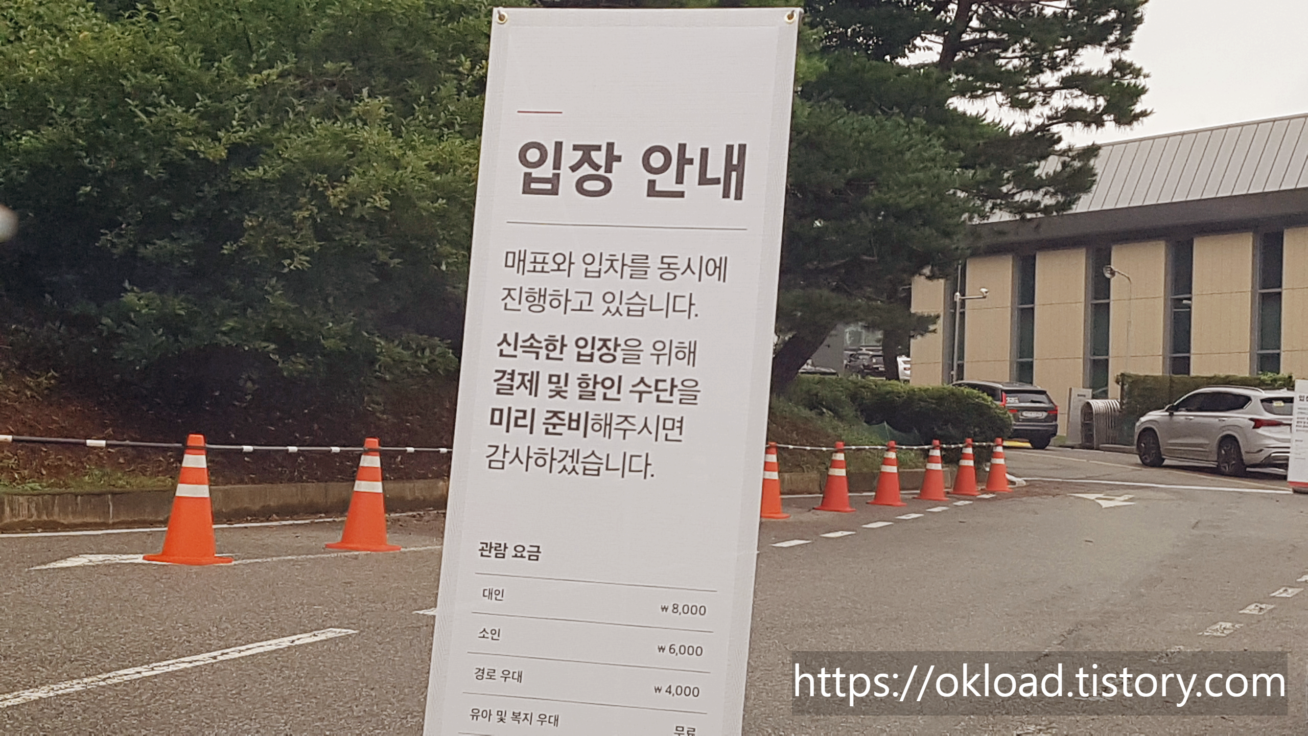 입장료에 주차비까지 포함되어 있기 때문에 관람을 마친 후 출차할 때에는 별도로 주차료를 지불하지 않아도 된다.