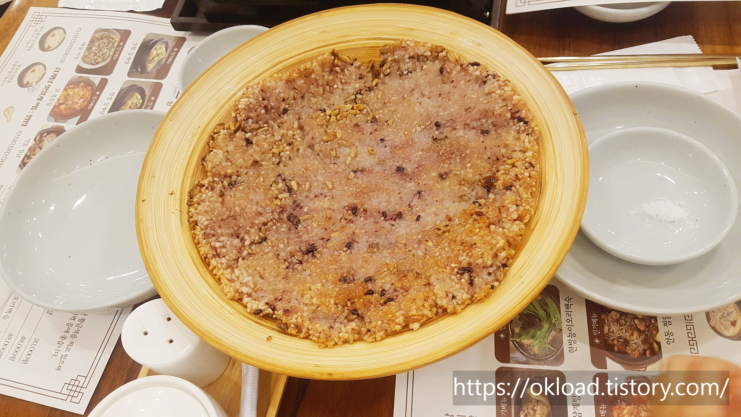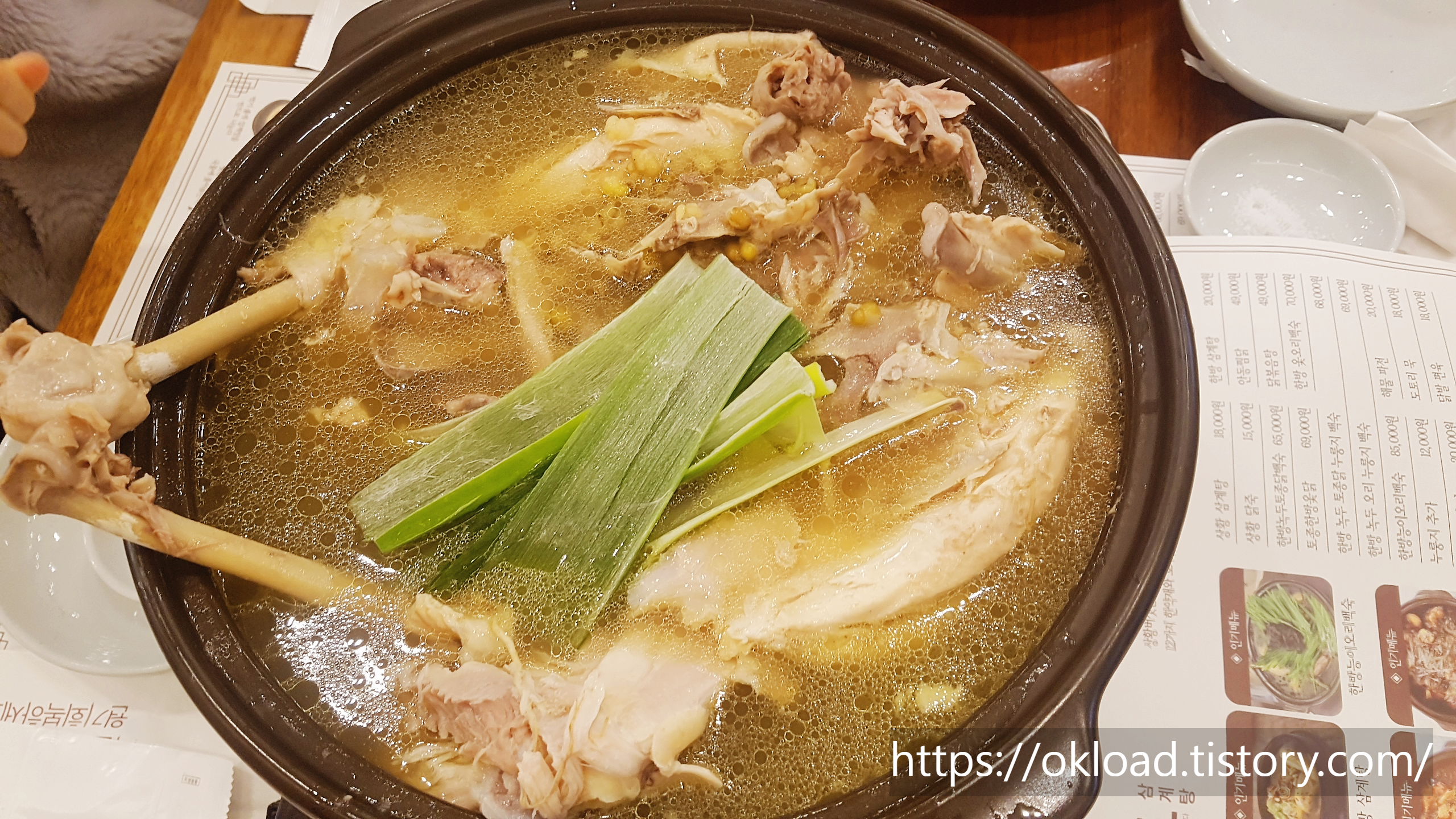 주문한 메뉴는 한방녹두토종닭누룽지백숙, 한방 녹두 오리 누룽지 백숙 2가지였다.