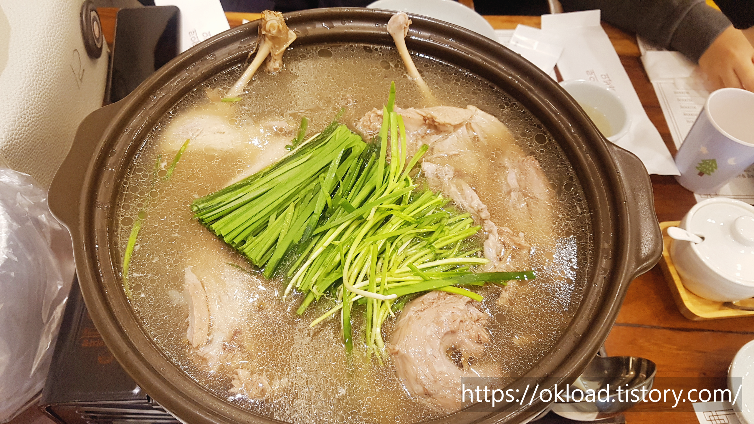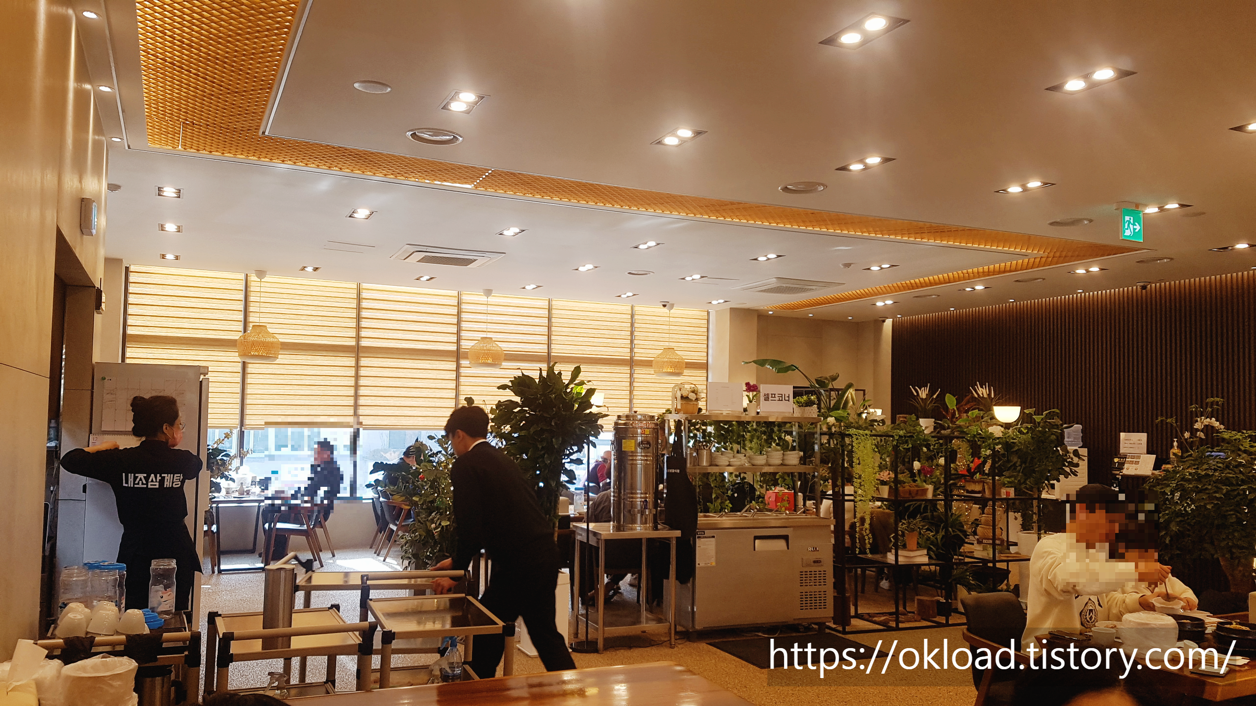 기존 삼계탕집의 이미지를 벗어나 따스하면서도 분위기좋은 카페 같은 내부의 모습이며, 무엇보다 테이블 간에 거리가 넓은 편이라서 더욱 여유와 쾌적함을 느낄 수 있다.