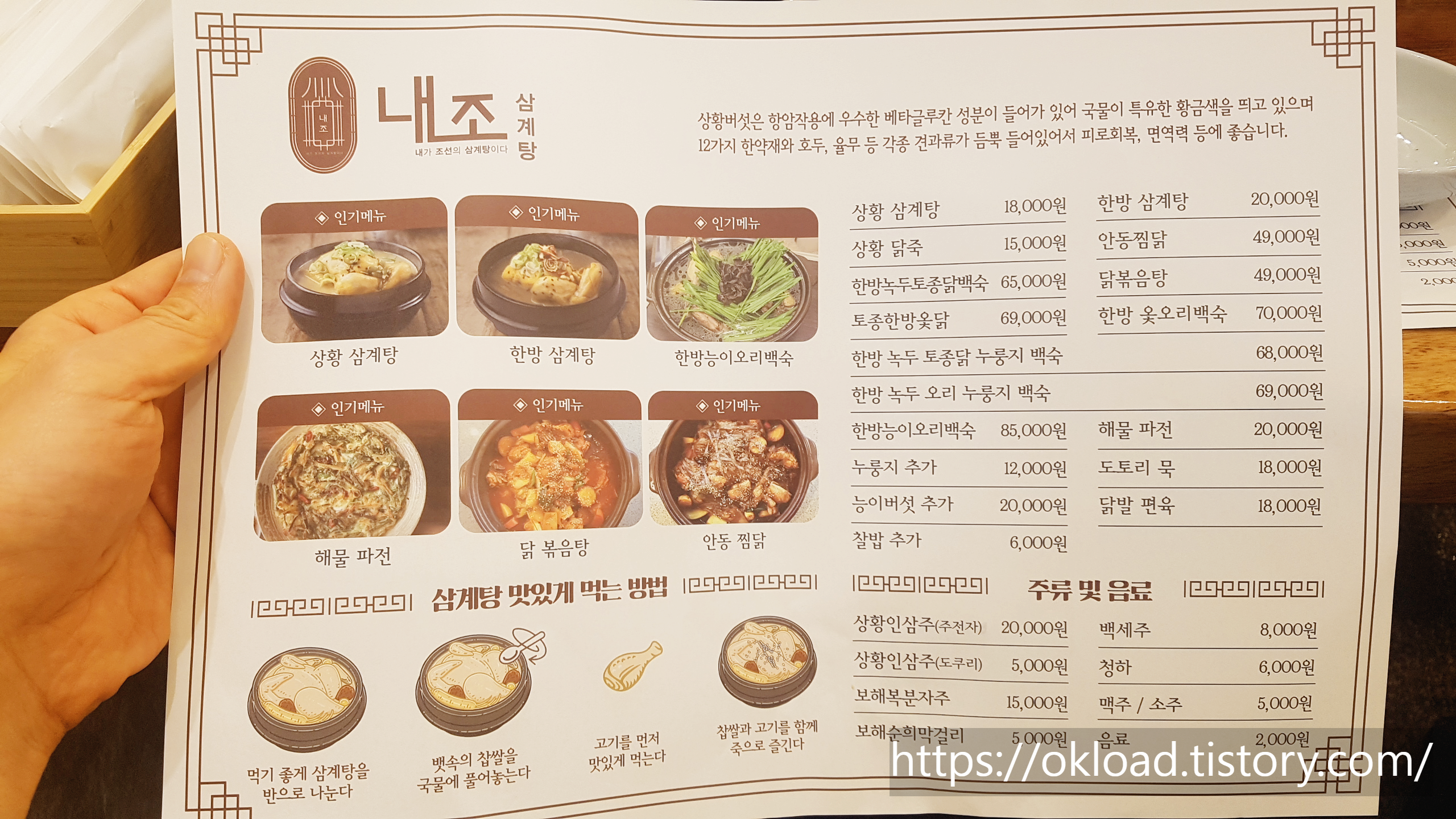 이번에는 내가 부모님을 자신 있게 모시고 다녀왔다. '내가 조선의 삼계탕이다'라는 문장을 다섯 글자로 줄인 '내조삼계탕'